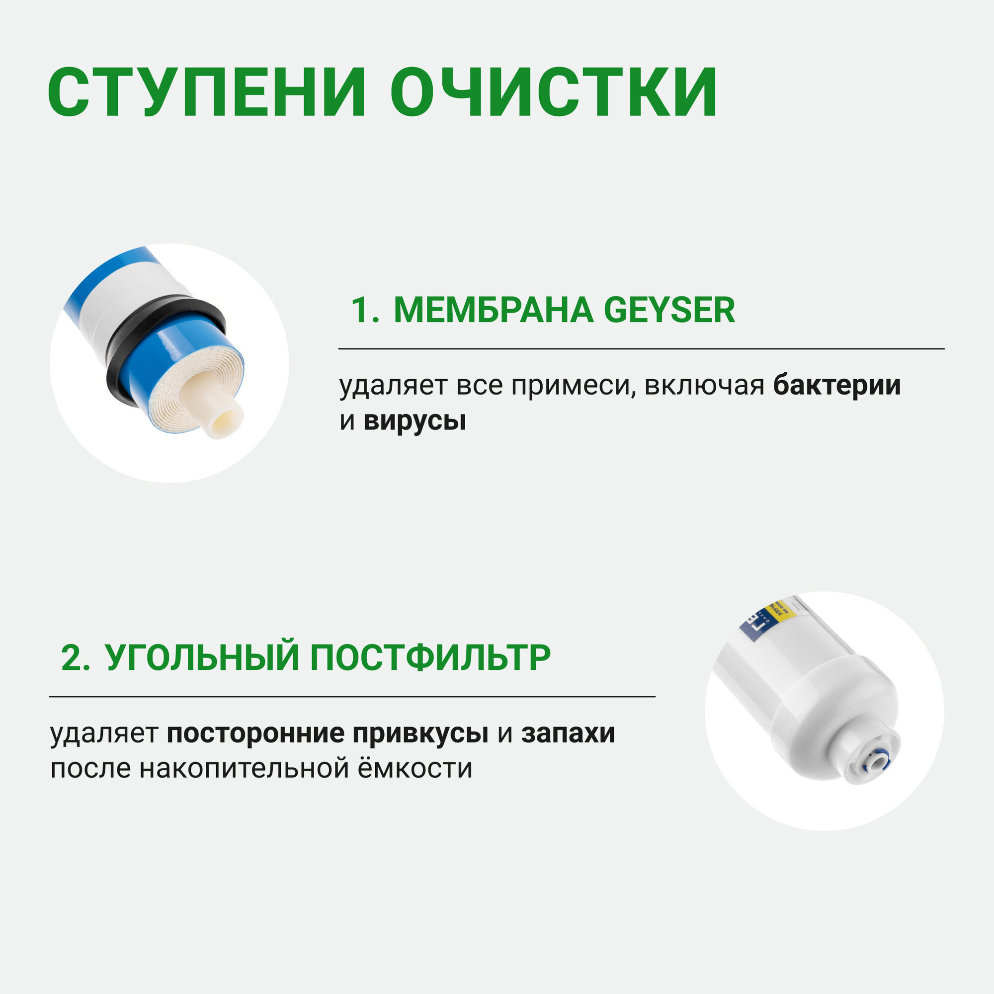Купить Набор картриджей для систем обратного осмоса мембрана + постфильтр, очистка от любых примесей, от вирусов, 50178
