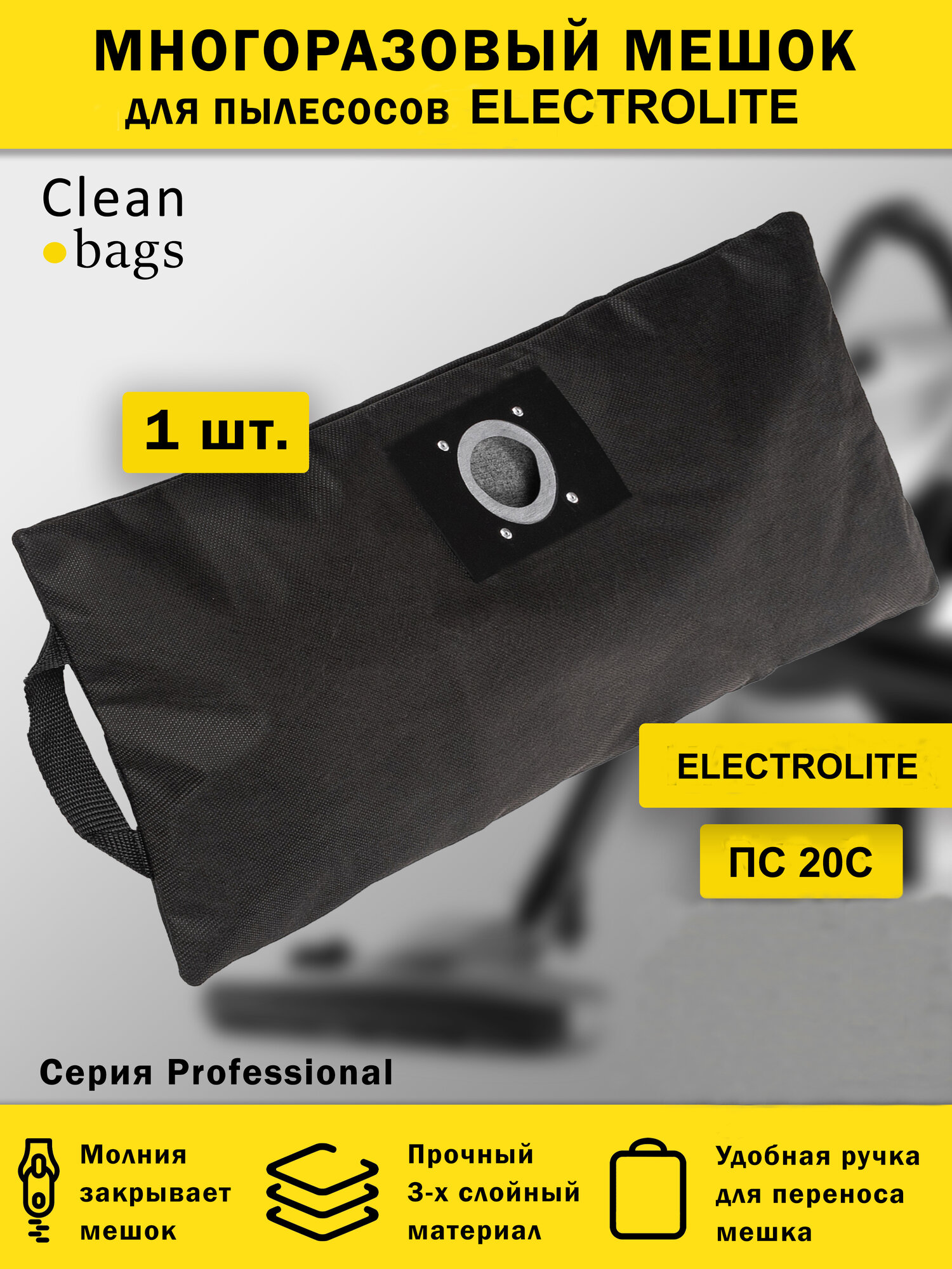 Многоразовый мешок с молнией для пылесоса Electrolite ПС 20C интересное: