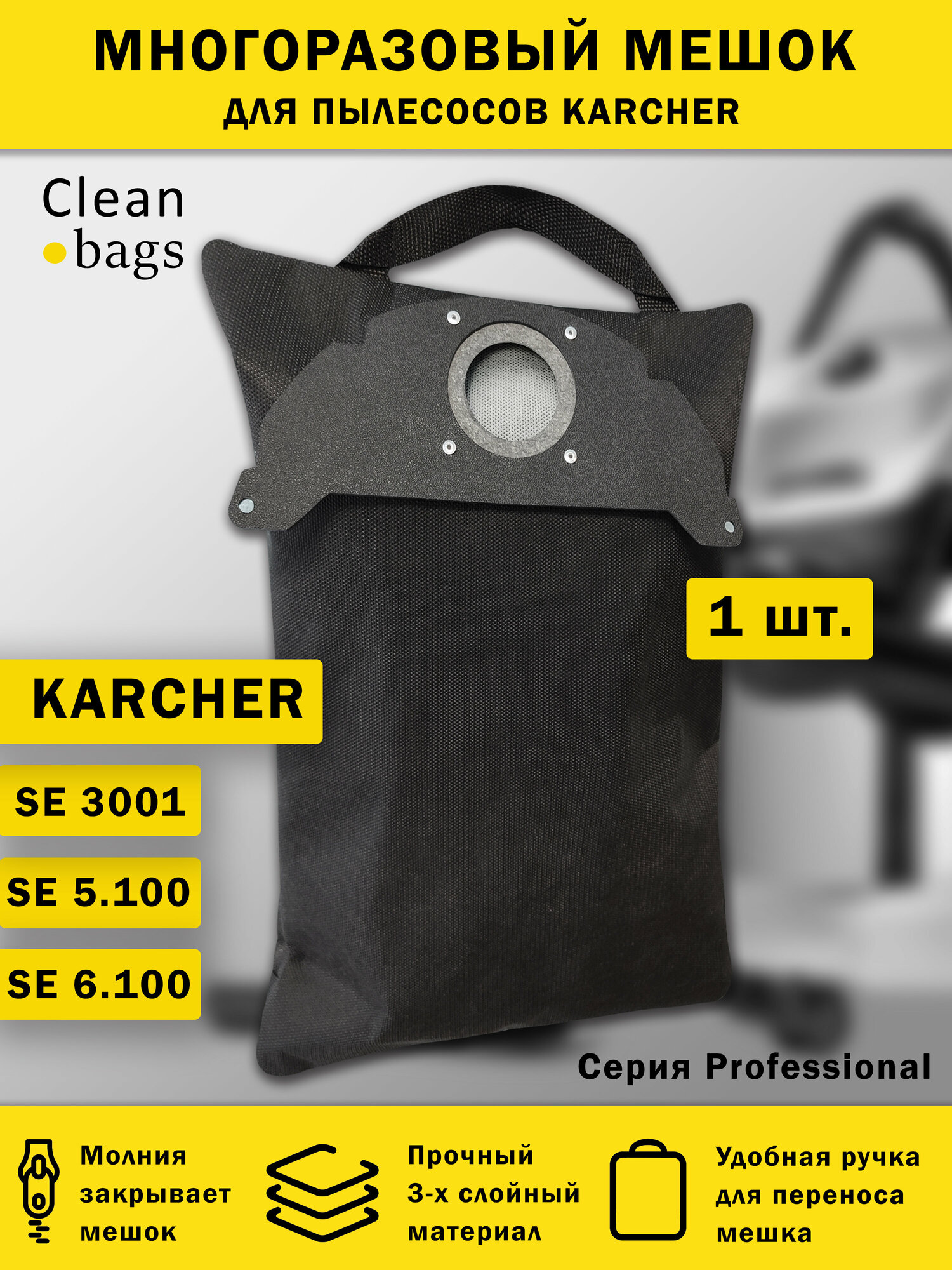 Многоразовый мешок на молнии для пылесоса Karcher 5.100, 6.100 интересное: