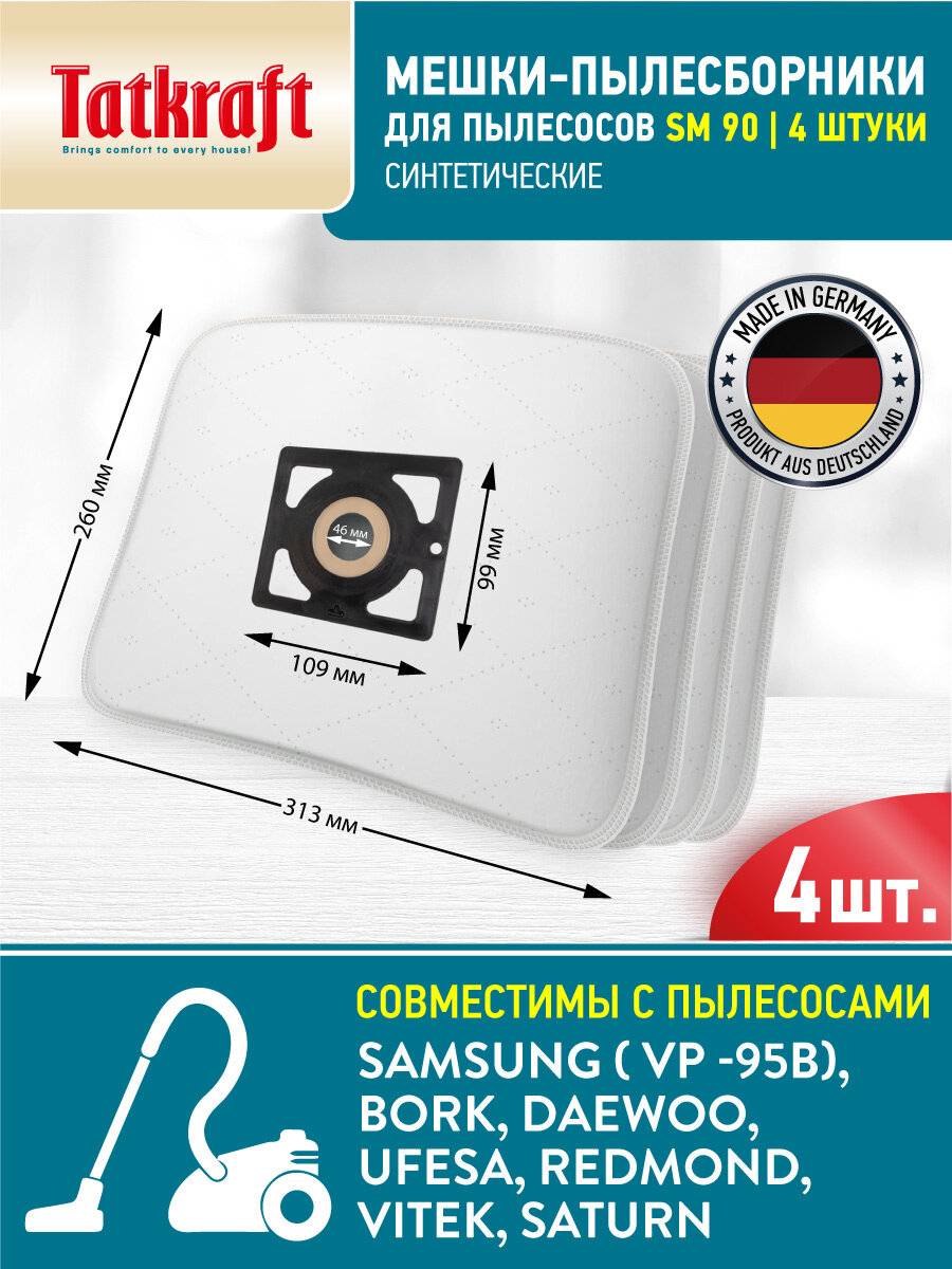 Мешки для пылесоса Samsung - 4 шт, пылесборники синтетические SM90 интересное: