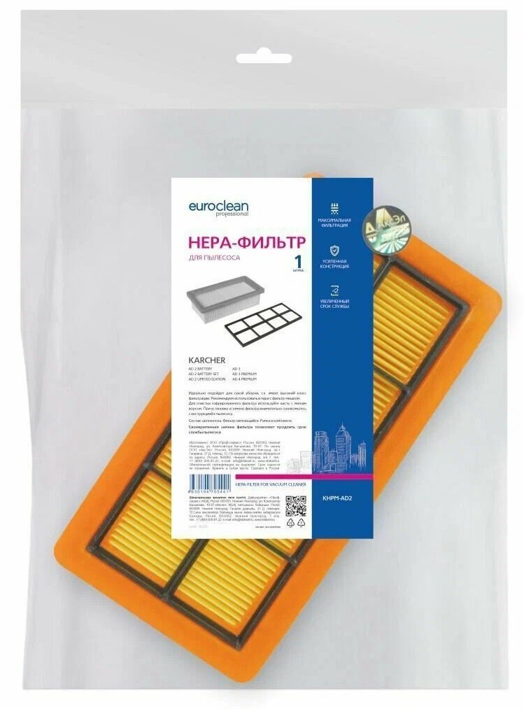 HEPA-фильтр Euroclean KHPM-AD2 целлюлозный для KARCHER AD2/ AD3/ AD4 интересное: