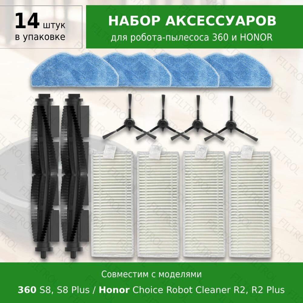 Комплект 14 шт. аксессуаров для робота-пылесоса 360 S8, S8 Plus / Honor Choice Robot Cleaner R2, R2 Plus интересное: