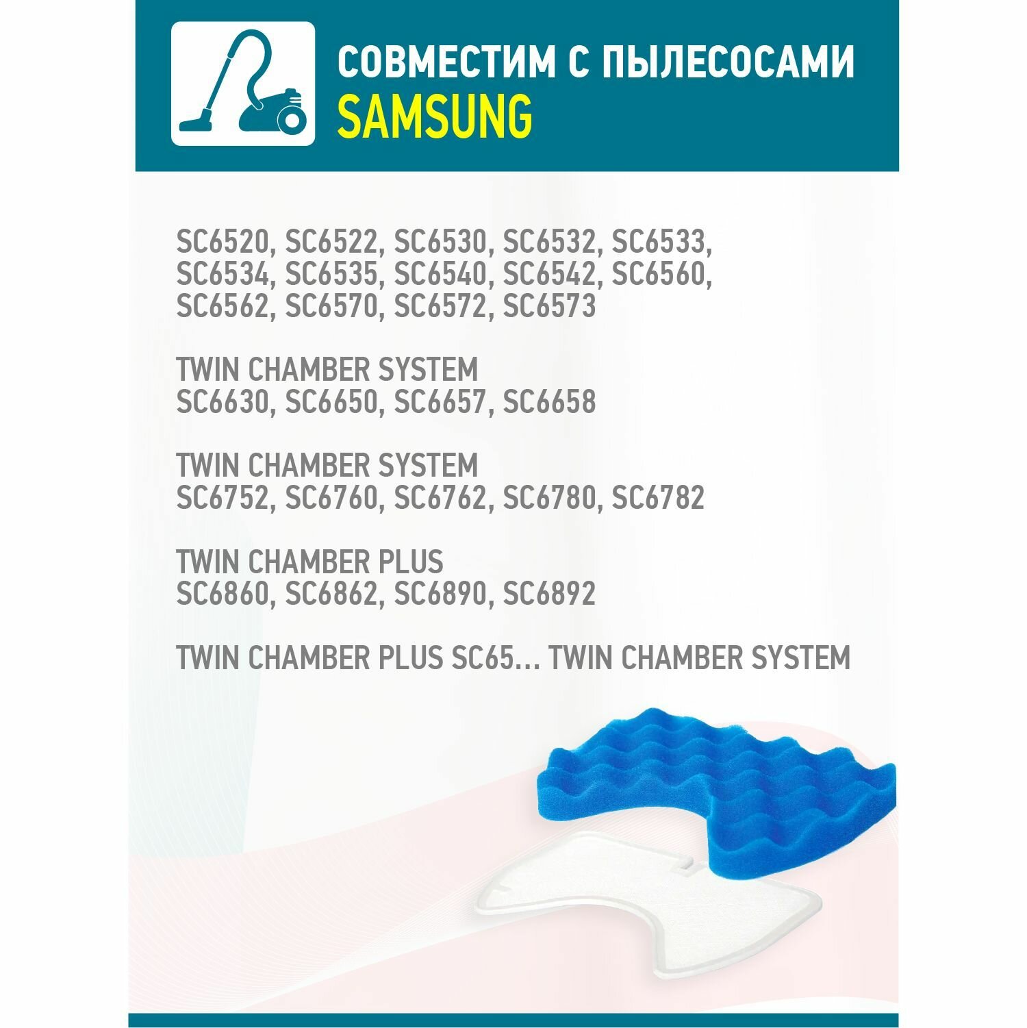 Фильтр для пылесоса моторный Samsung SC65 SC66 SC67 SC68, 1 губчатый + 1 сетчатый фильтр интересное: