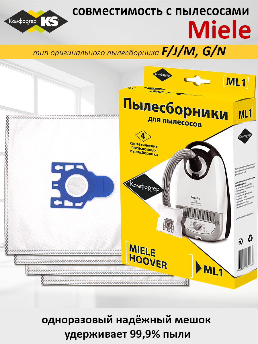 Пылесборники синтетические ML-1 для MIELE, HOOVER; упаковка 4шт. интересное: