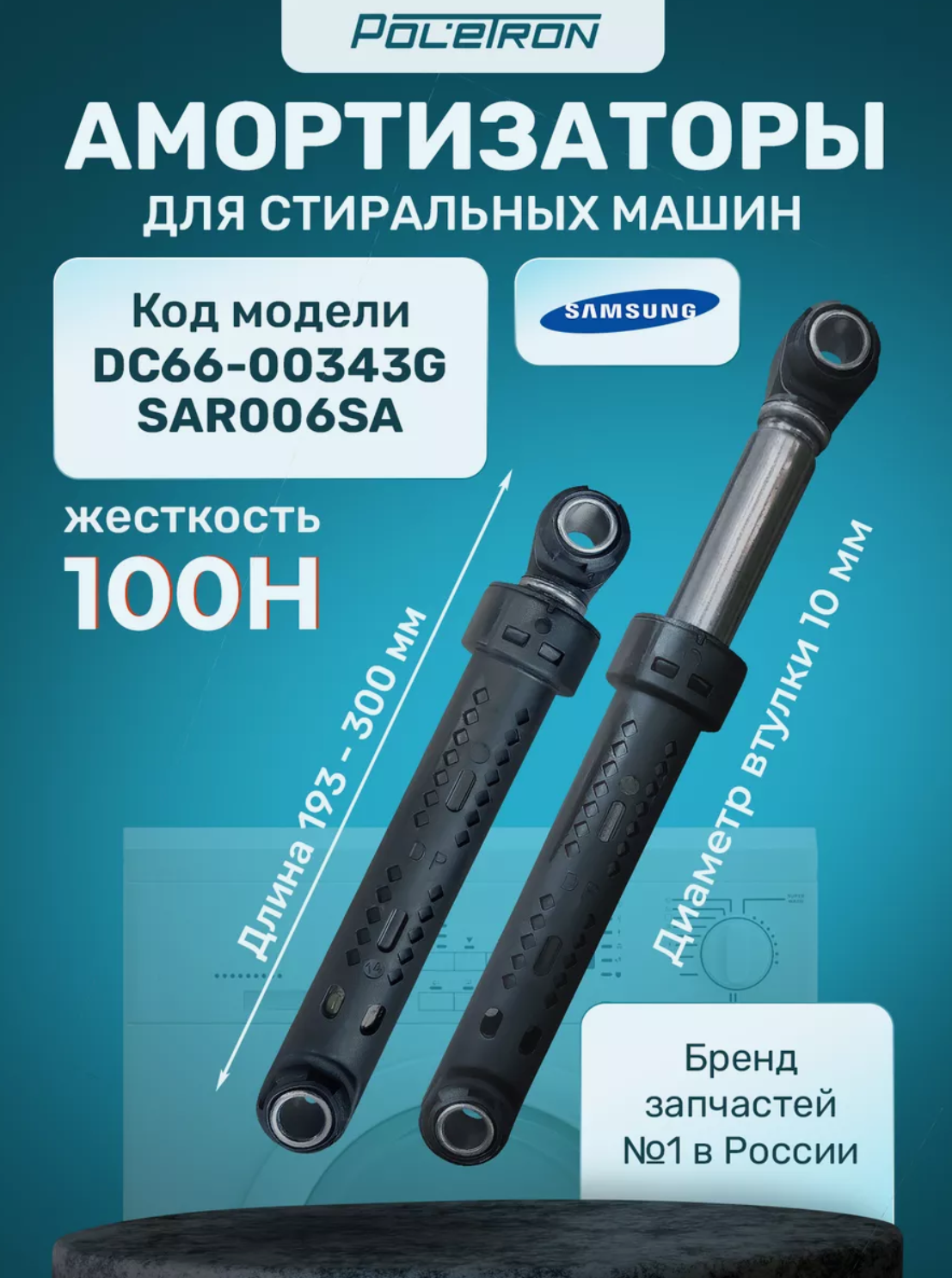 Амортизатор 2 шт SAMSUNG 100H L193-300мм 10мм DC66-00343G круглый интересное: