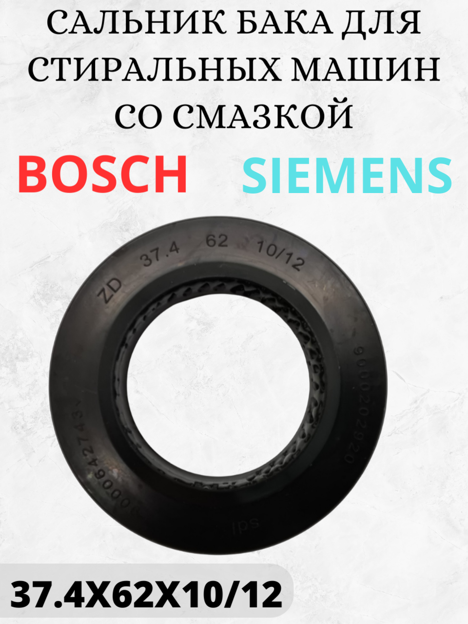 Сальник (армированная манжета) бака со смазкой стиральной машины Bosch, Siemens 37,4x62x10/12 интересное: