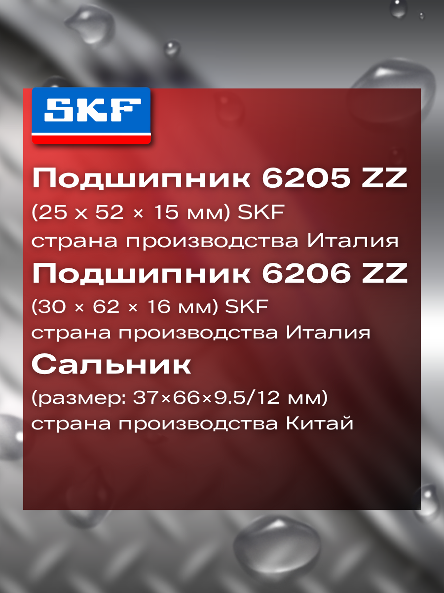 Ремонтный комплект бака для стиральной машины LG (подшипники: SKF-6205ZZ, SKF-6206ZZ, сальник 37x66x9,5/12) интересное: