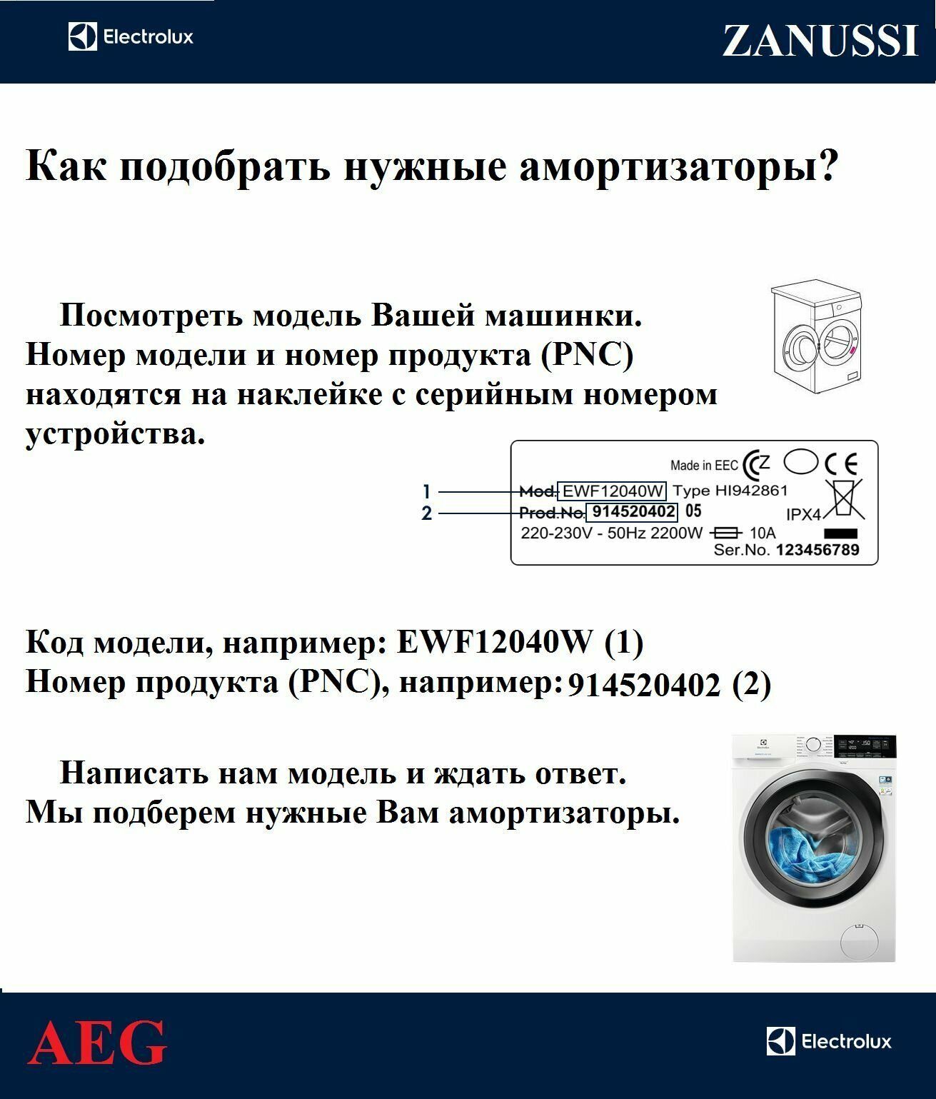 Амортизаторы для стиральной машины Zanussi Electrolux AEG 80N 2 шт, 1322553015 интересное: