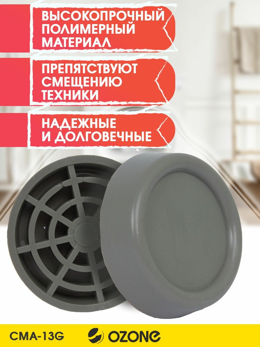 Антивибрационные подставки для стиральных машин и холодильников, 4 шт, цвет белый, круглые, бренд: OZONE, CMA-17W