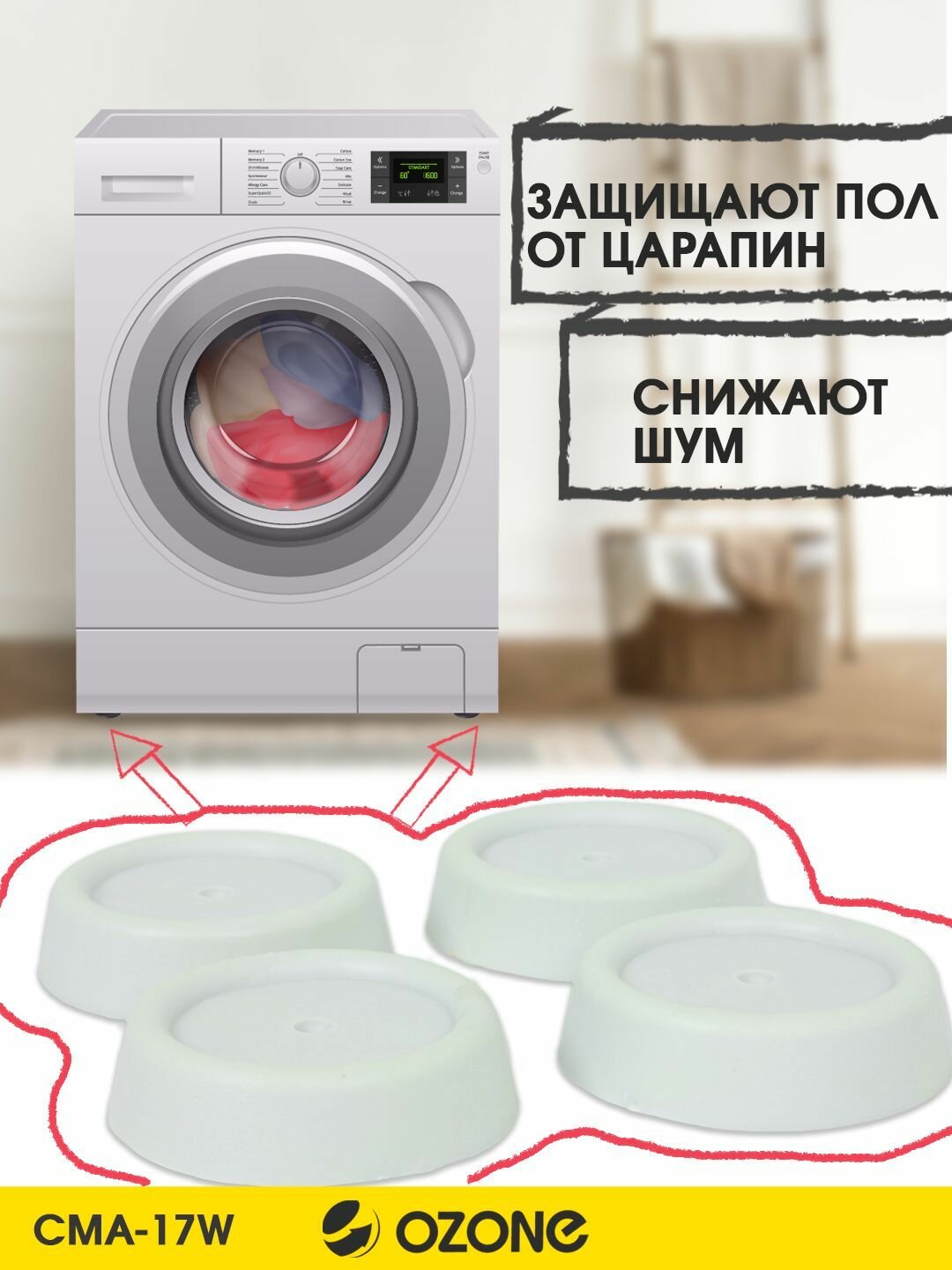 СохранитьАнтивибрационные подставки для стиральных машин и холодильников, 4 шт, цвет белый, круглые, бренд: OZONE, CMA-17W интересное: