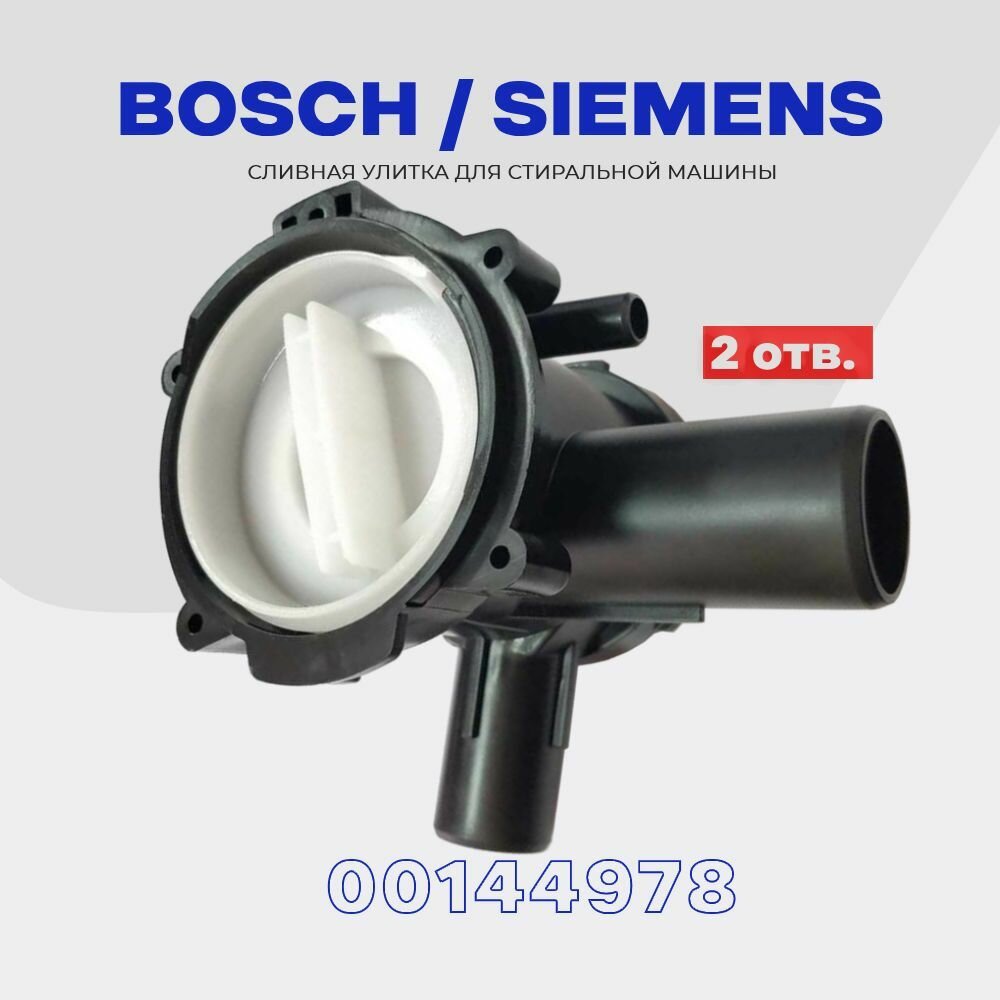 Улитка насоса для стиральной машины Bosch Siemens 00144978 ( PMP603BO ) / С фильтром / Крепление 3 защелки интересное: