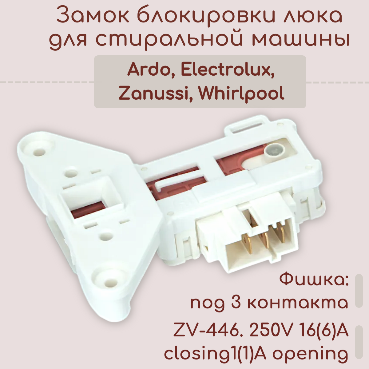 Замок блокировки люка стиральной машины Ardo, Electrolux, Zanussi, Whirlpool/ под 3 контакта интересное: