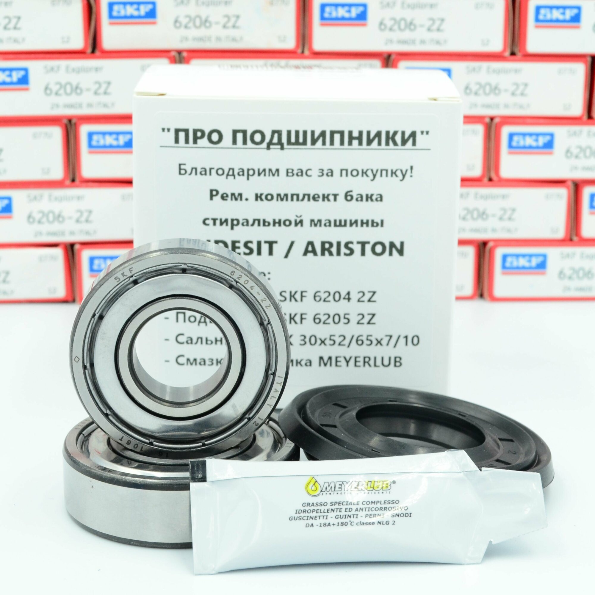 Купить Ремкомплект бака для стиральной машины Indesit, Hotpoint Ariston / SKF 6204 2Z, 6205 2Z / сальник 30*52/65*7/10 + смазка