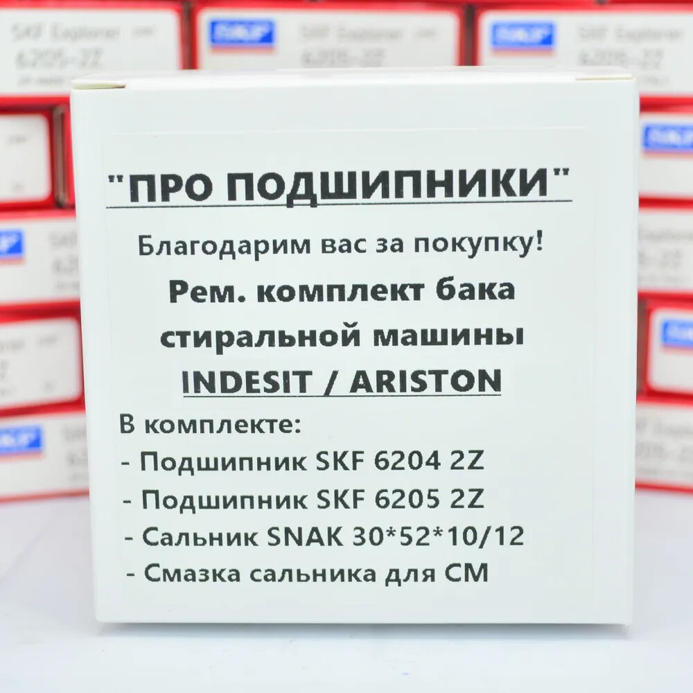 Ниже Вы можете прочитать отзывы на Ремкомплект бака для стиральной машины Indesit, Hotpoint Ariston, Haier / SKF 6204-2Z, 6205-2Z, сальник 30*52*10/12 + смазка, ознакомится с подробными характеристиками, посмотреть интересные обзоры и фотографии на Ремкомплект бака для стиральной машины Indesit, Hotpoint Ariston, Haier / SKF 6204-2Z, 6205-2Z, сальник 30*52*10/12 + смазка.