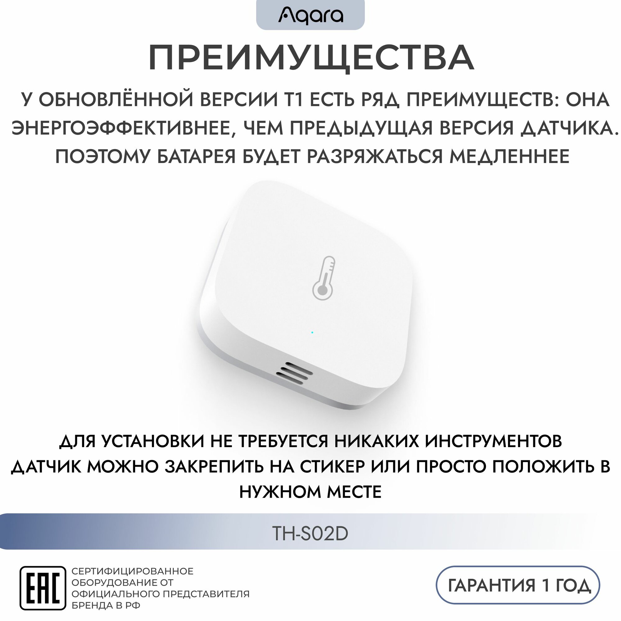 Умный WI-FI датчик температуры и влажности (TH-S02D) AQARA, T1, Zigbee, умный дом, регион Россия интересное: