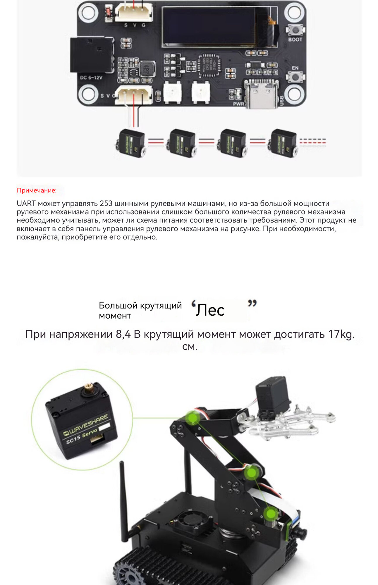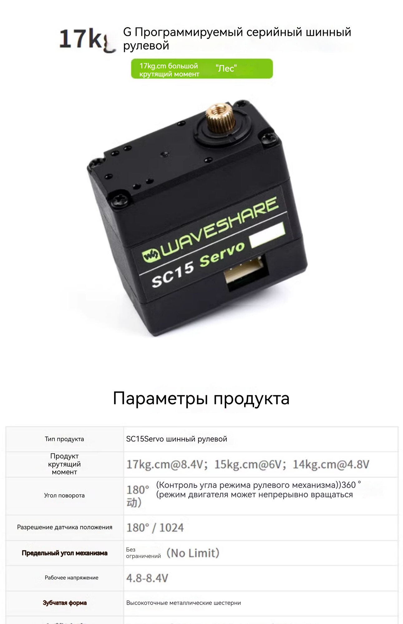 Программируемый последовательный сервопривод SC15 Servo bus с высоким крутящим моментом 17 кг/ поворотом на 180° интересное: