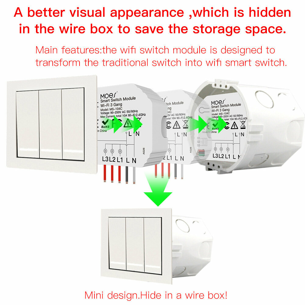 Wifi graffiti smart home switch on-off 3-полосный мини-модуль интеллектуального переключателя Alexa speaker voice WiFi 3-полосное включение-выключение интересное: