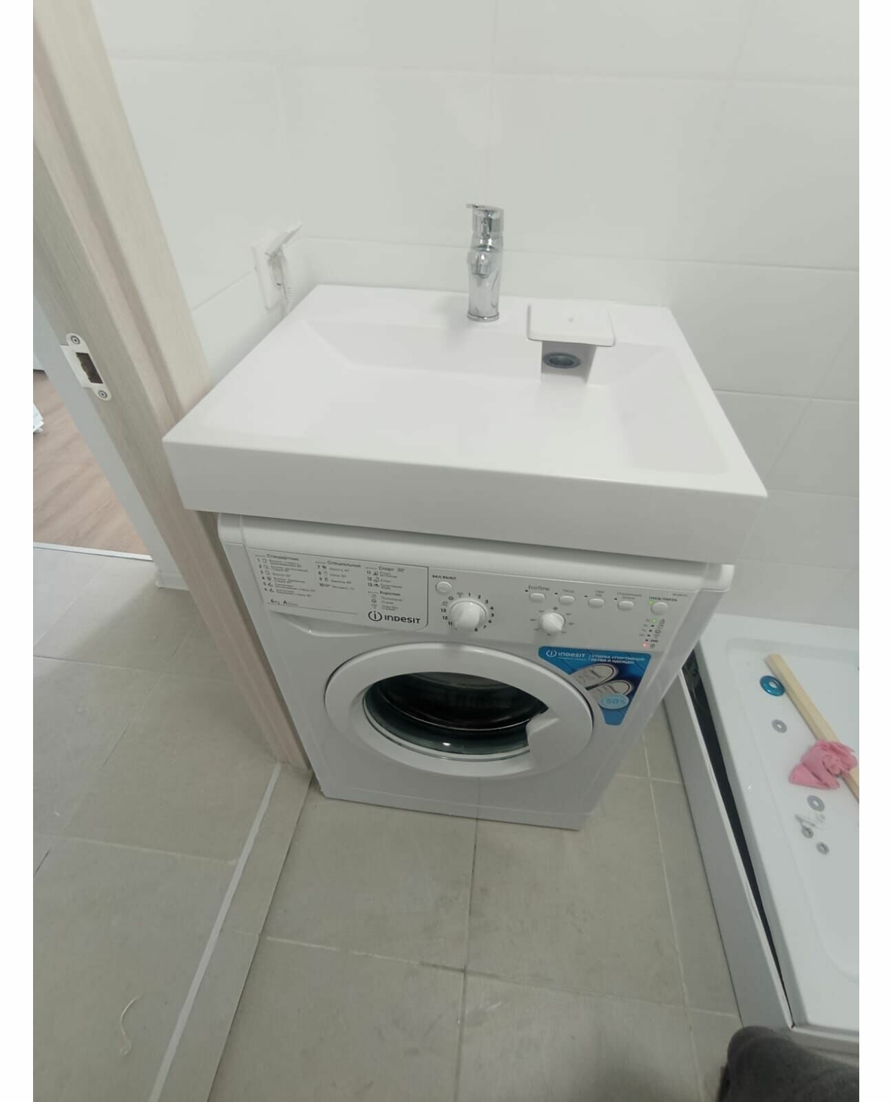 Стиральная машина под раковину Indesit IWUB 4105 и раковина Монако 60 над стиральной машиной / узкая стиральная машина с раковиной интересное: