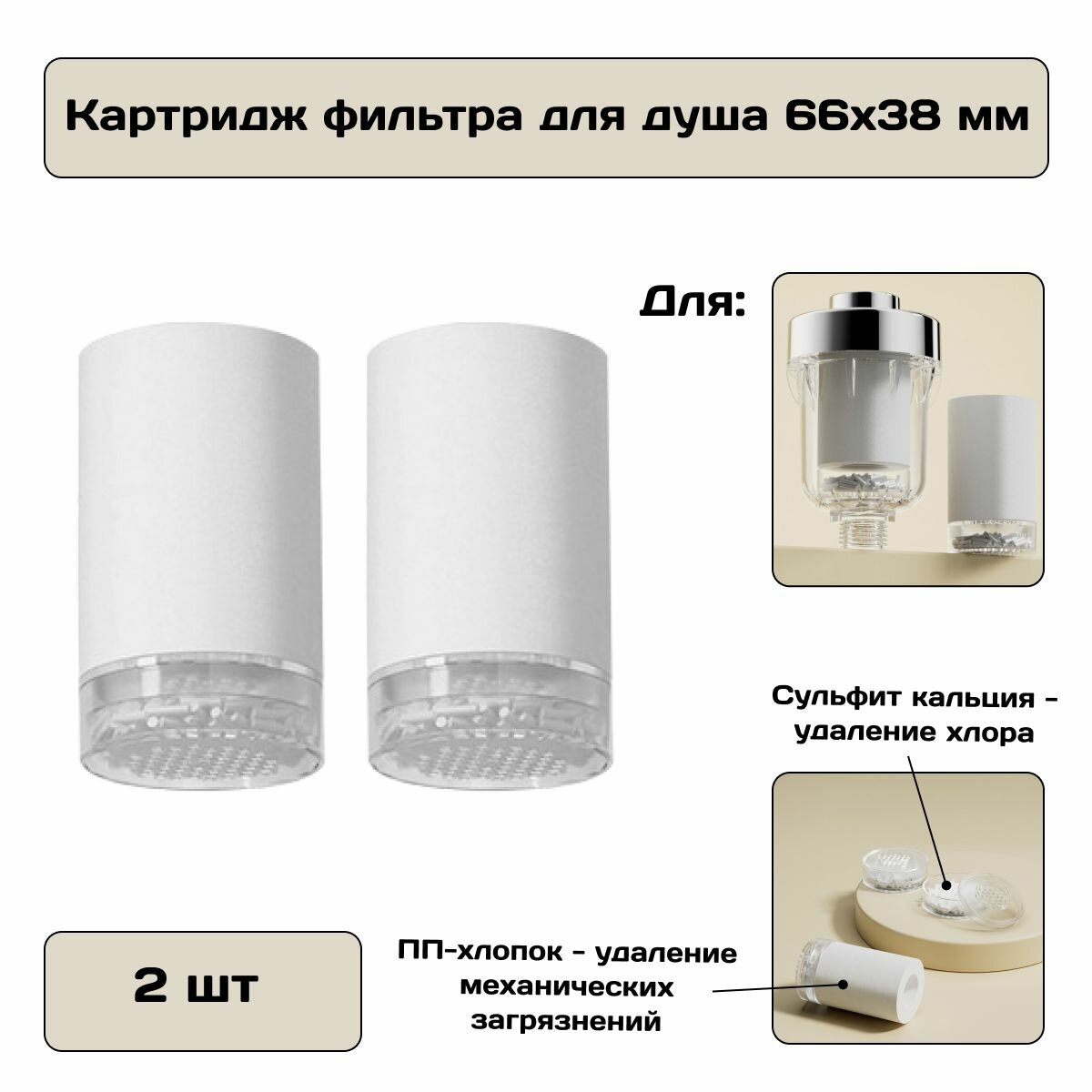 Картридж фильтра для душа, очистка воды от примесей и хлора, 2 шт. интересное:
