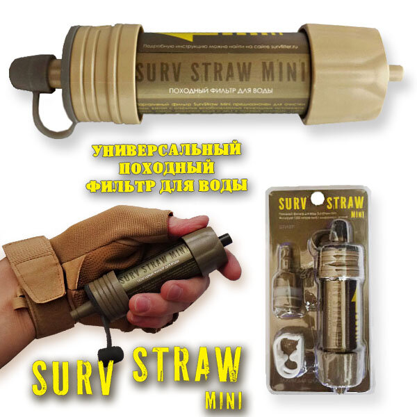 Фильтр для очищения воды портативный, туристический, тактический, походный SurvStraw Mini, на 1000л интересное: