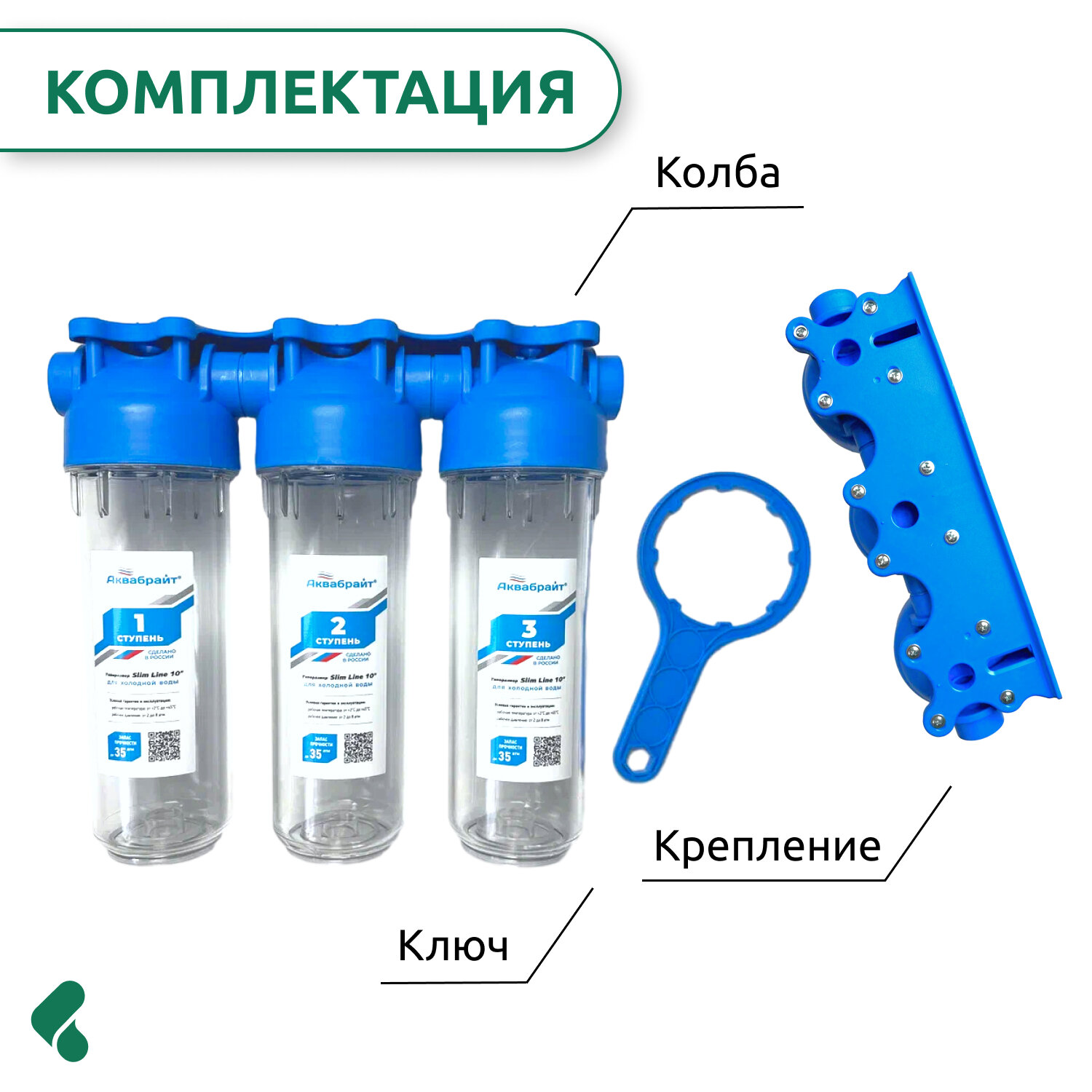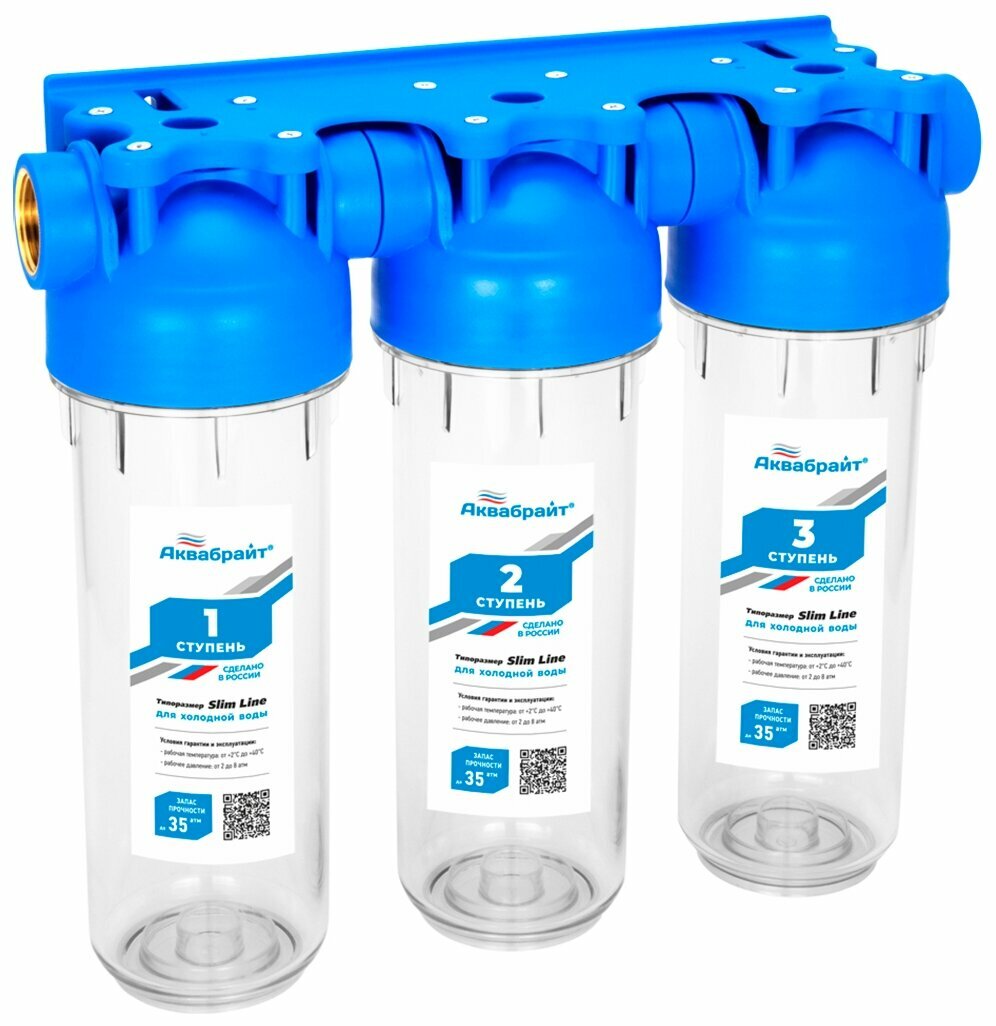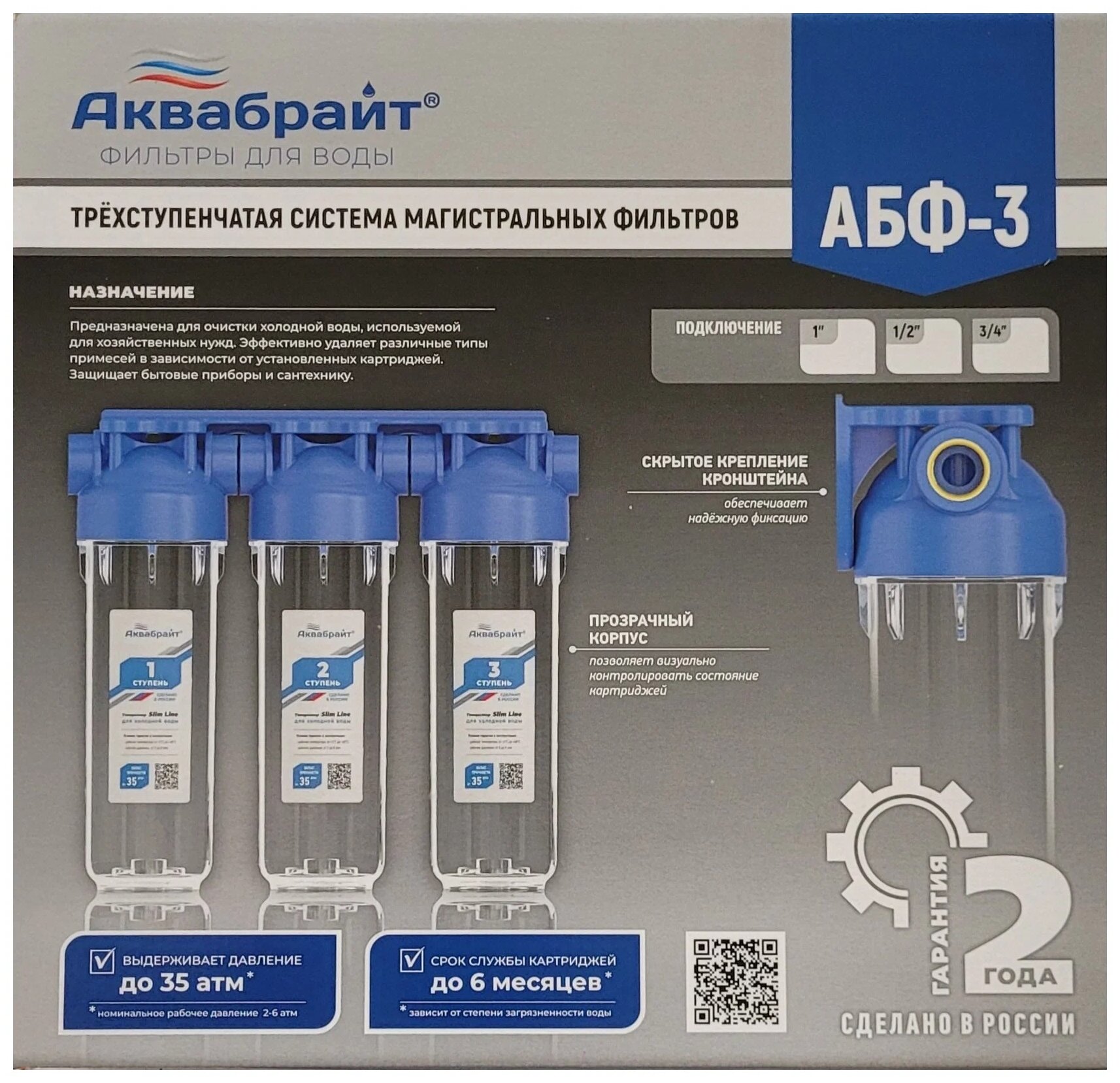 Фильтр магистральный Аквабрайт АБФ-2-12 (1/2) SLIM LINE стандарт двойной без картриджей, колба, ключ, кранштейн интересное: