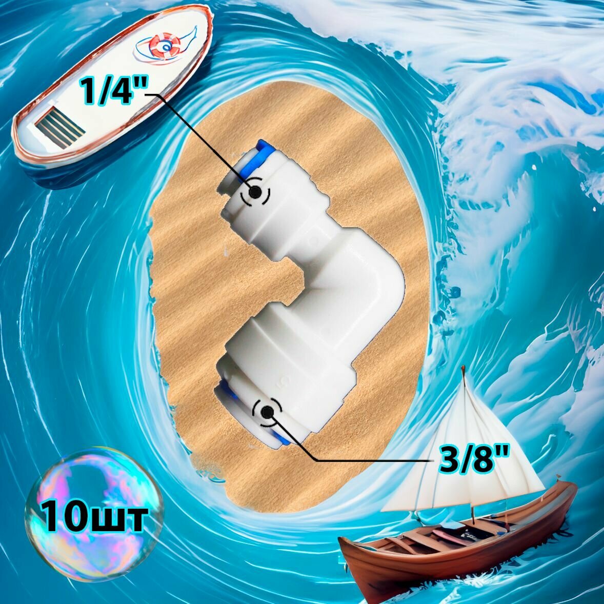 Купить Фитинг переходник Г-образный 1/4" трубка - 3/8" трубка (фитинги съемные для осмоса и фильтра) 10шт.