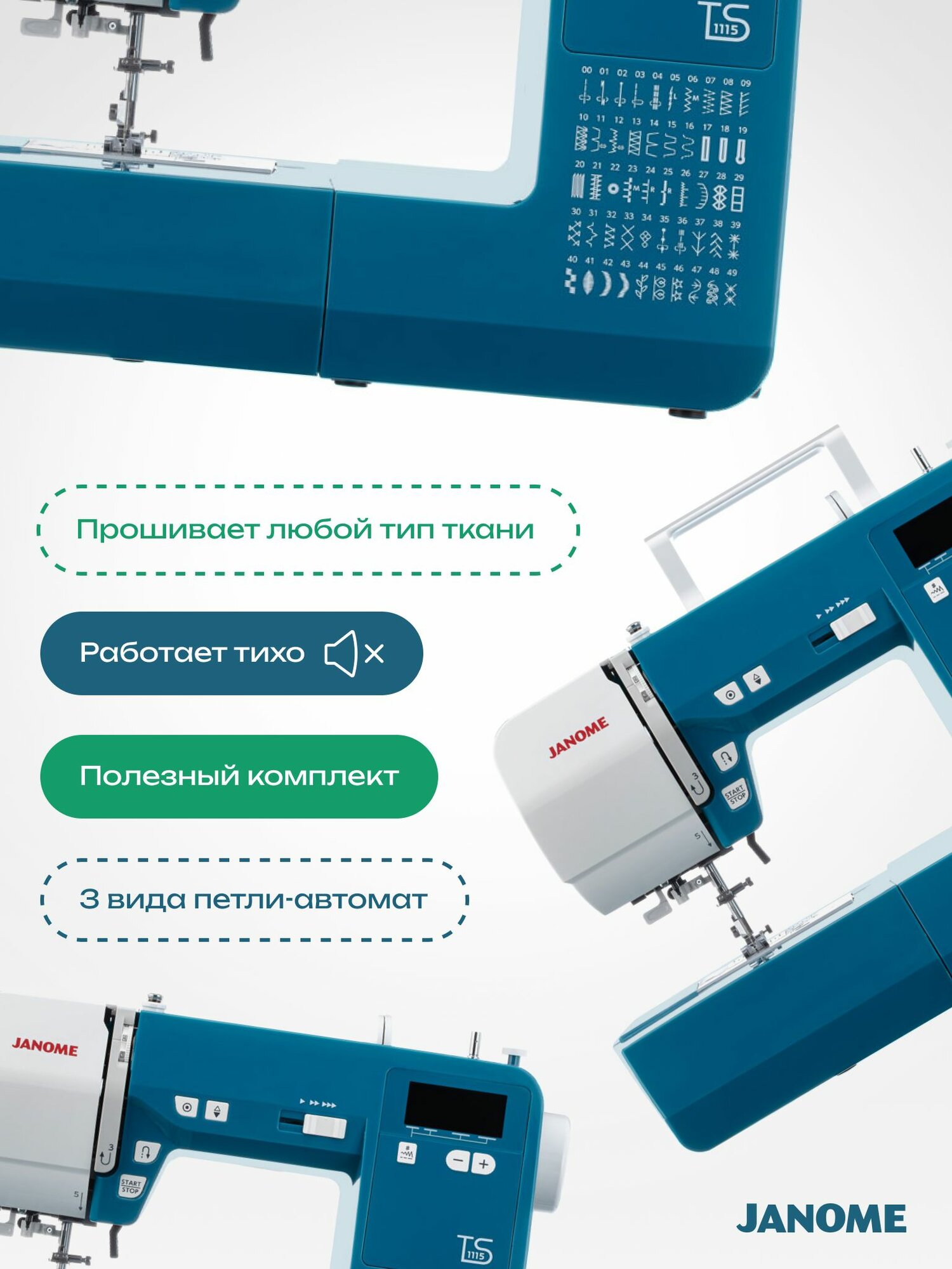 Компьютерная швейная машина Janome TS1115 интересное: