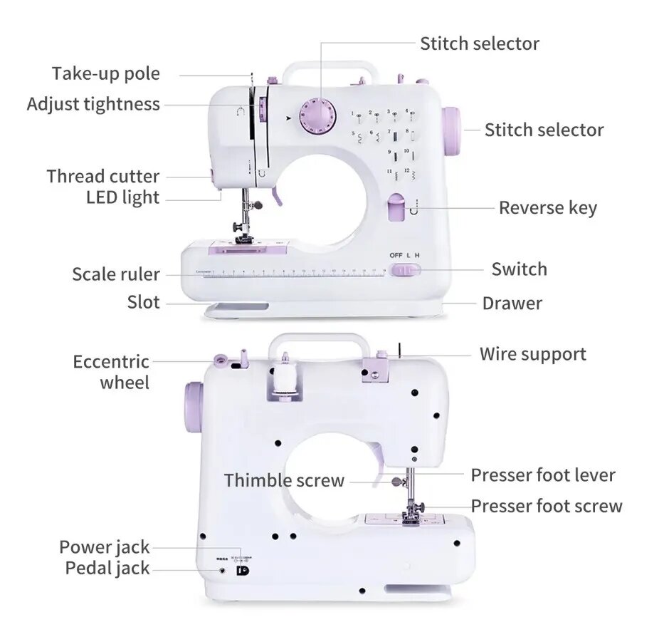 | Комплектация | Бытовая многофункциональная мини-электрическая швейная машина |