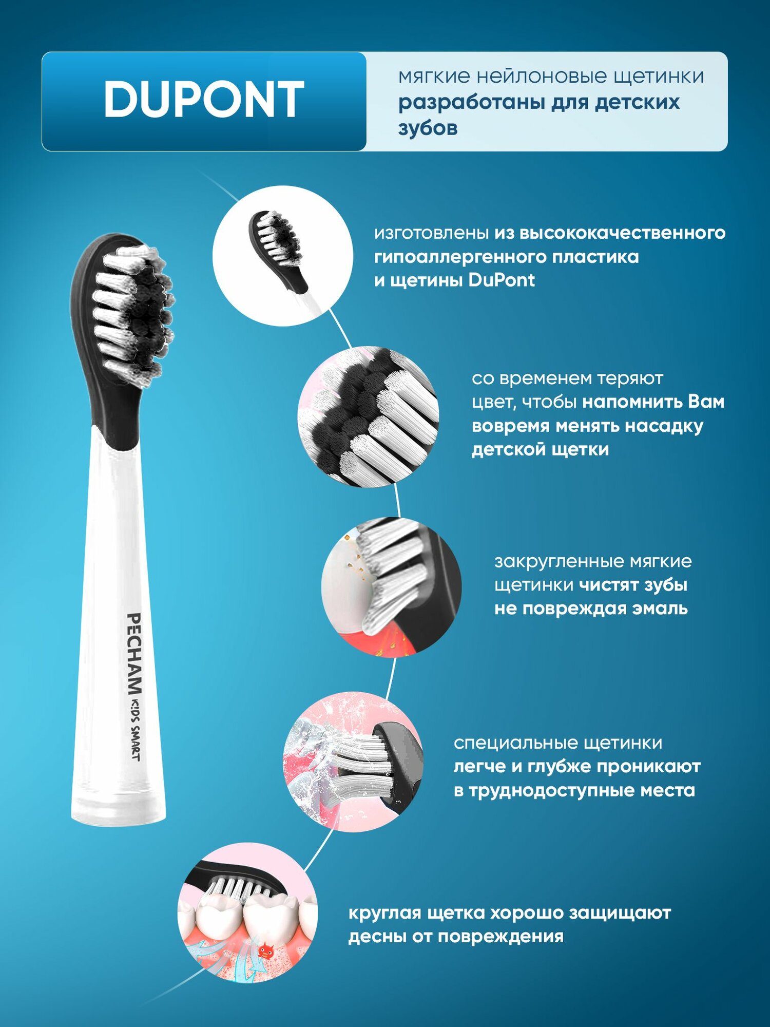 Сменные насадки для детской электрической зубной щетки PECHAM Kids Smart Panda, 2 шт. интересное: