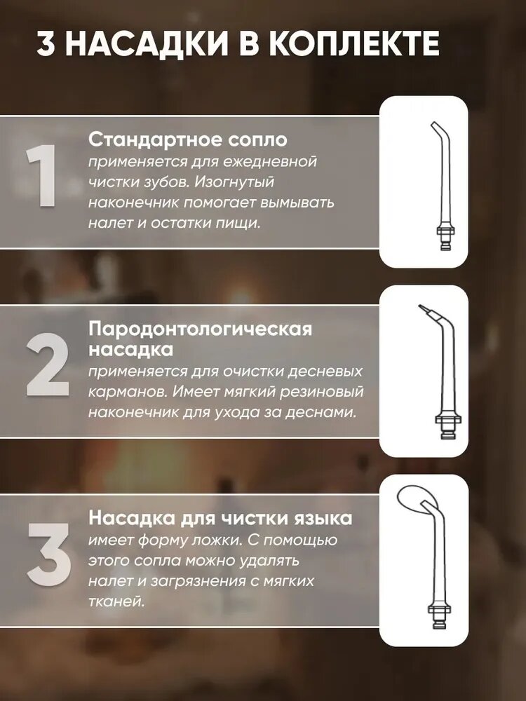 | Насадки для зубной щетки | в комплект входит 1 стандартная насадка (сопло) |
