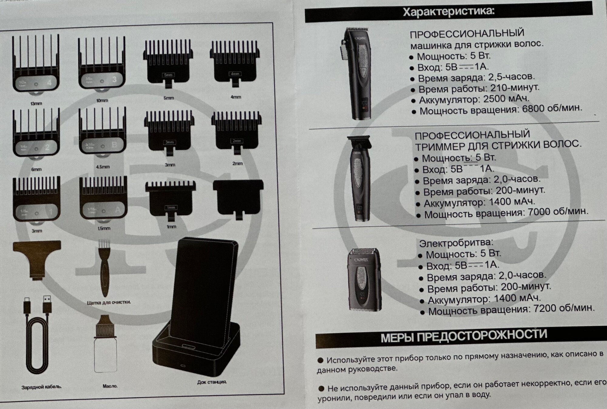 | Дополнительные функции | стрижка влажных волос / фигурная стрижка / стрижка бороды |