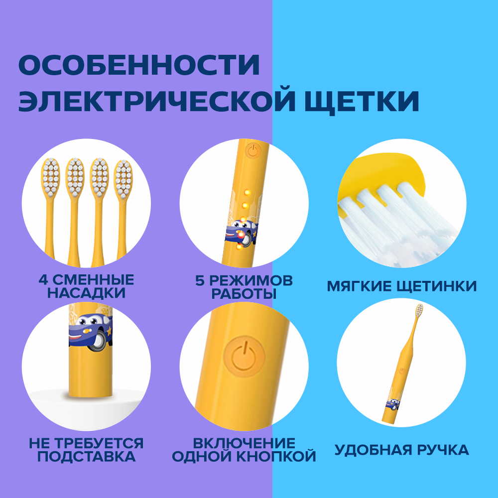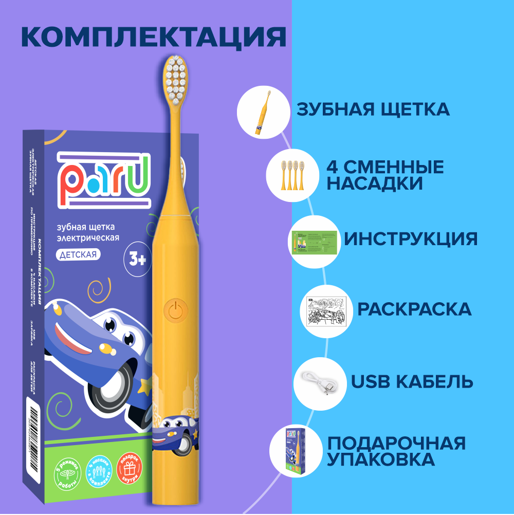 Детская электрическая зубная щетка Ультразвуковая зубная щетка PARU 4 насадки, USB зарядка