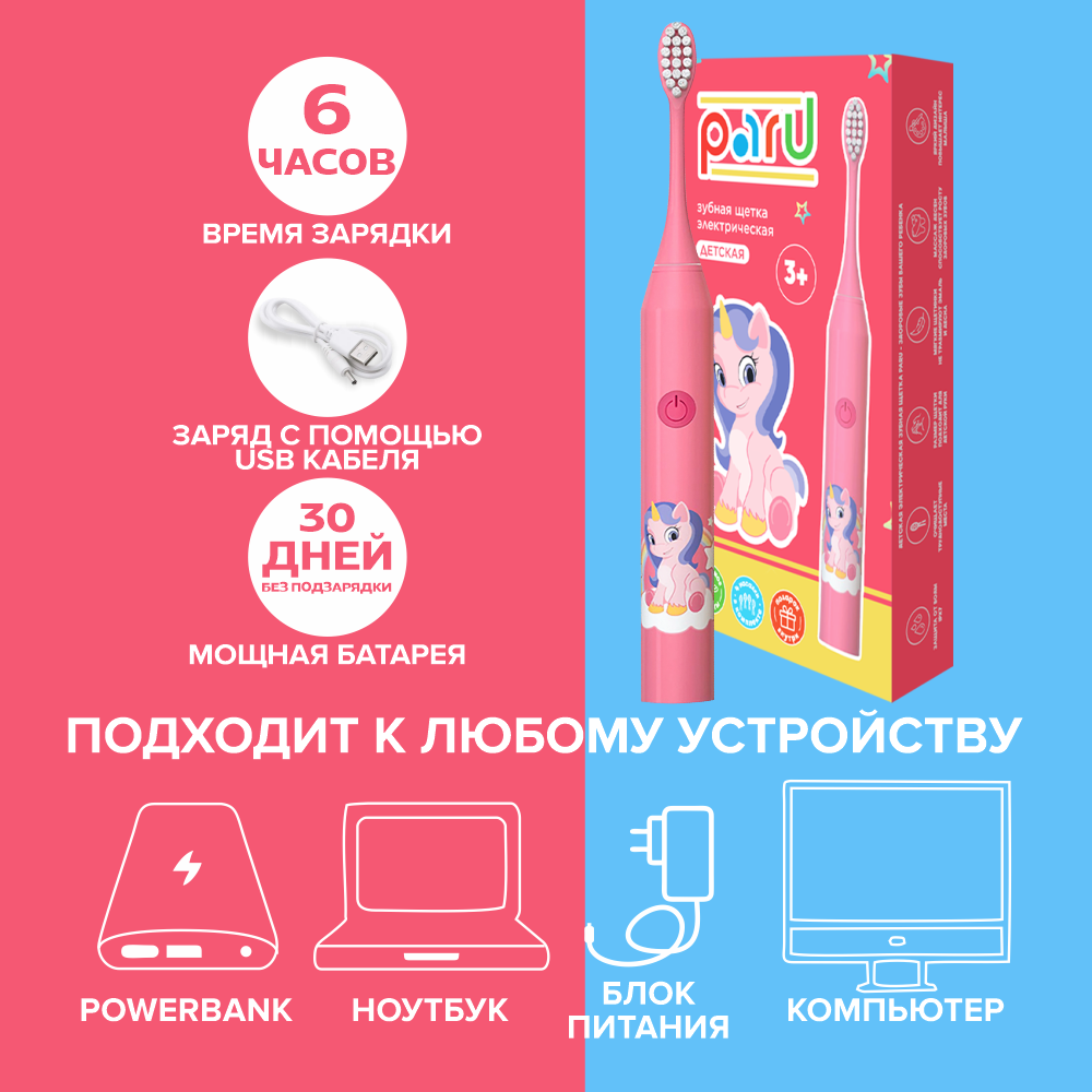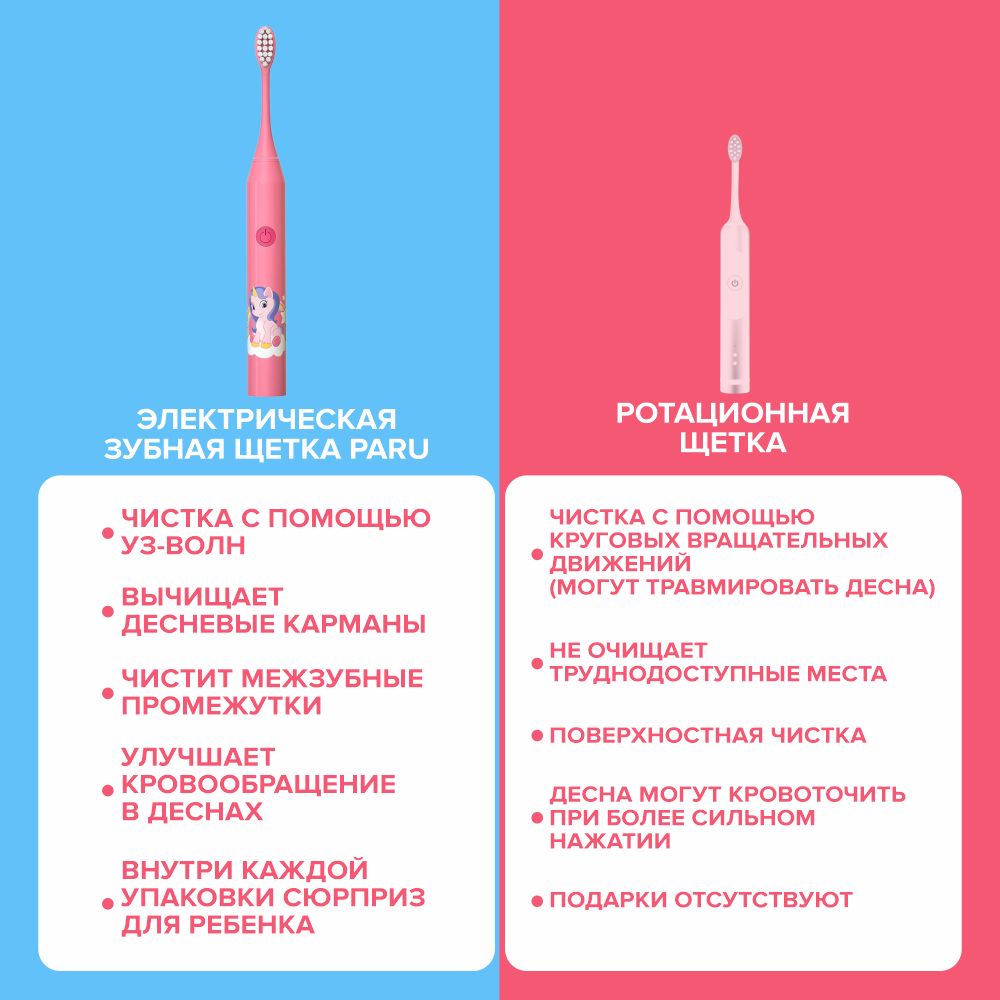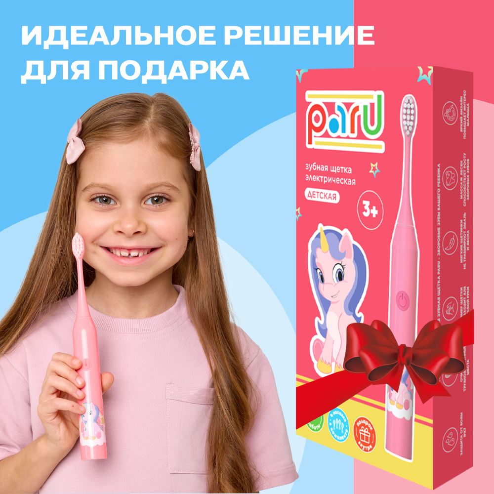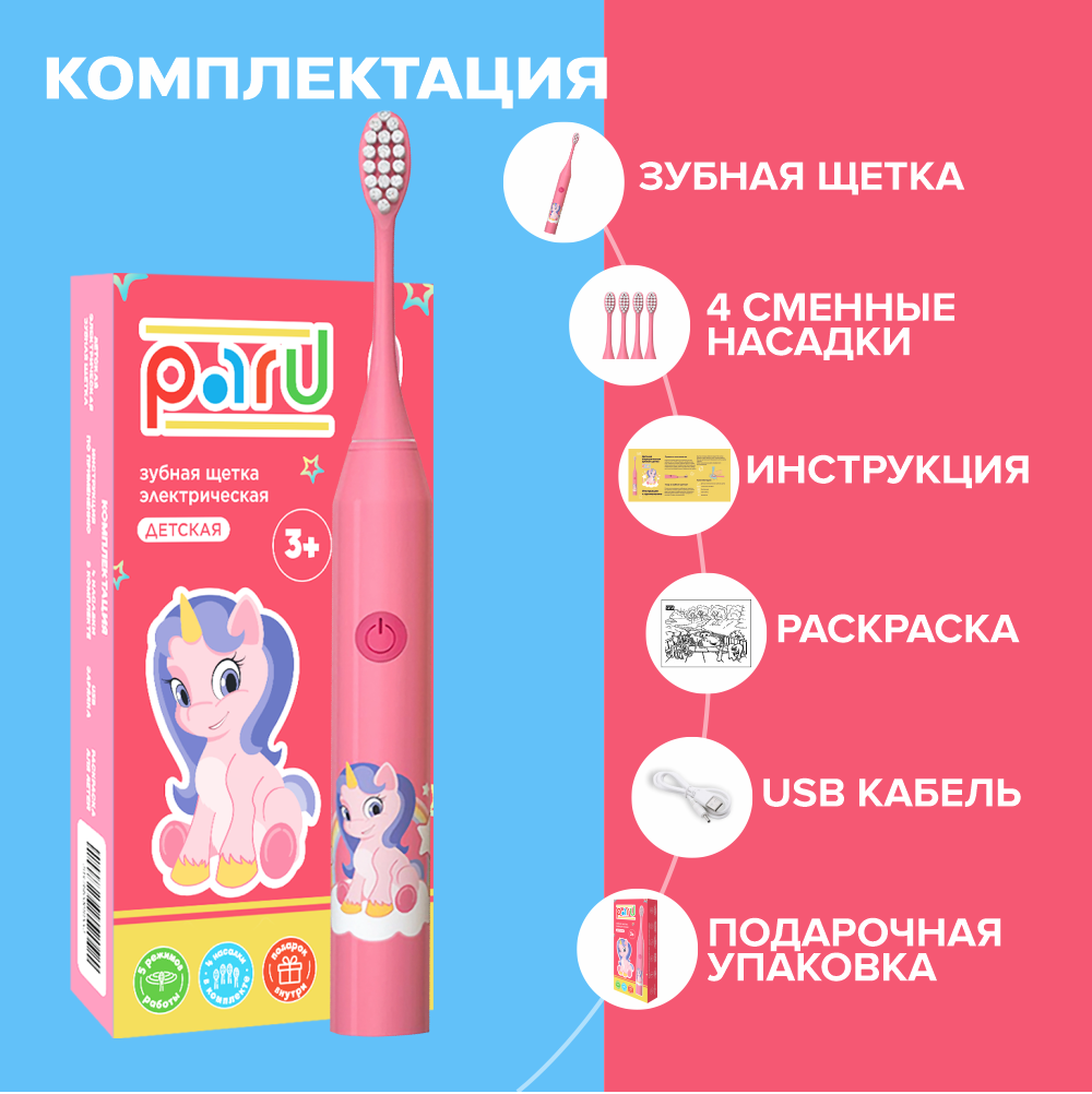 Купить Детская электрическая зубная щетка Ультразвуковая зубная щетка для детей PARU 4 насадки Щетка для девочки