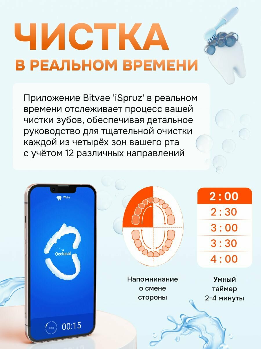 Электрическая зубная щетка Bitvae S2 Toothbrush (чехол + 8 насадок) с поддержкой прилоложения для смартфонов, белая