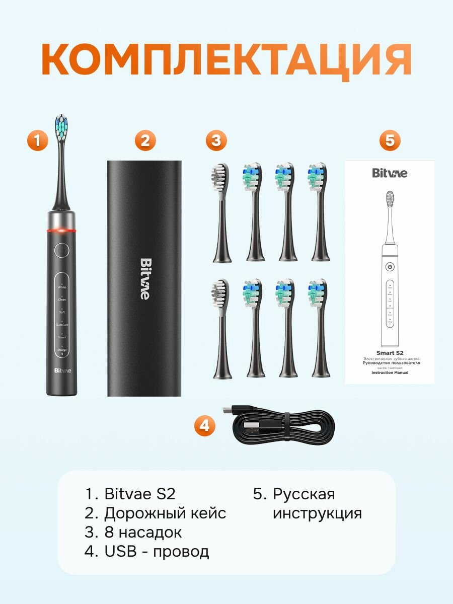 Электрическая зубная щетка Bitvae S2 Toothbrush (S2) , GLOBAL, Black интересное: