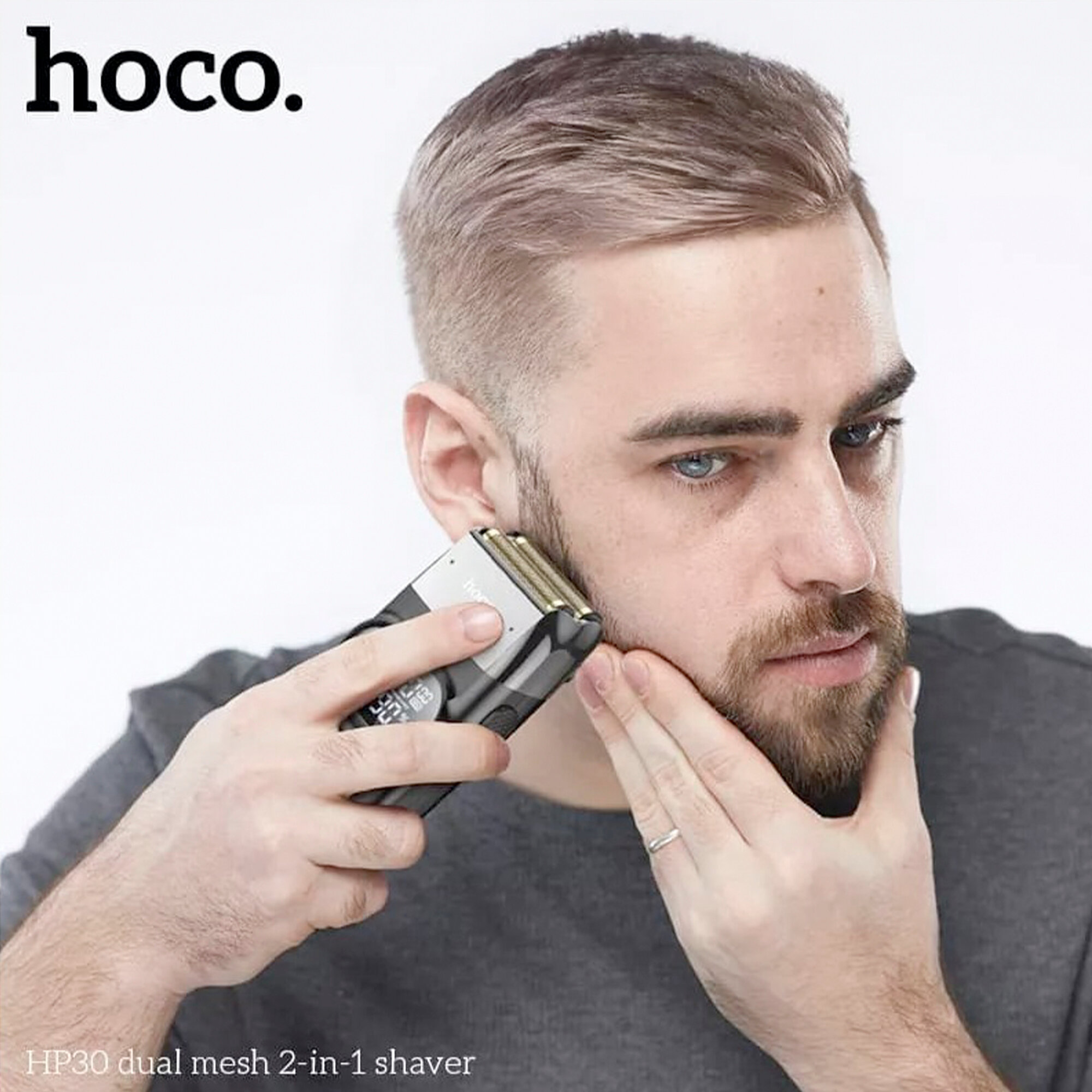 Электробритва с двойным лезвием и триммером для стрижки бороды HP30, Hoco, с дисплеем, черный интересное: