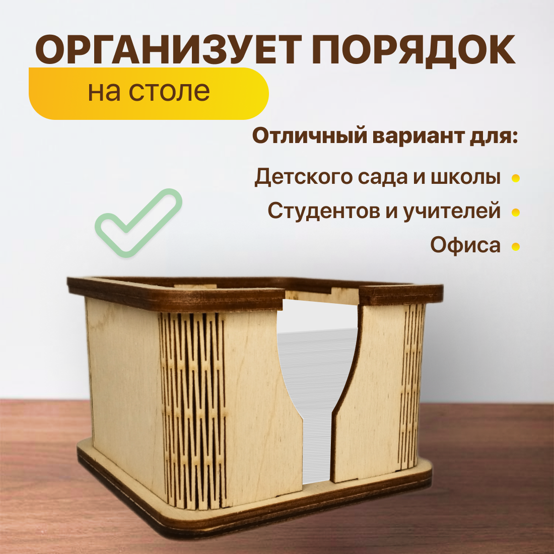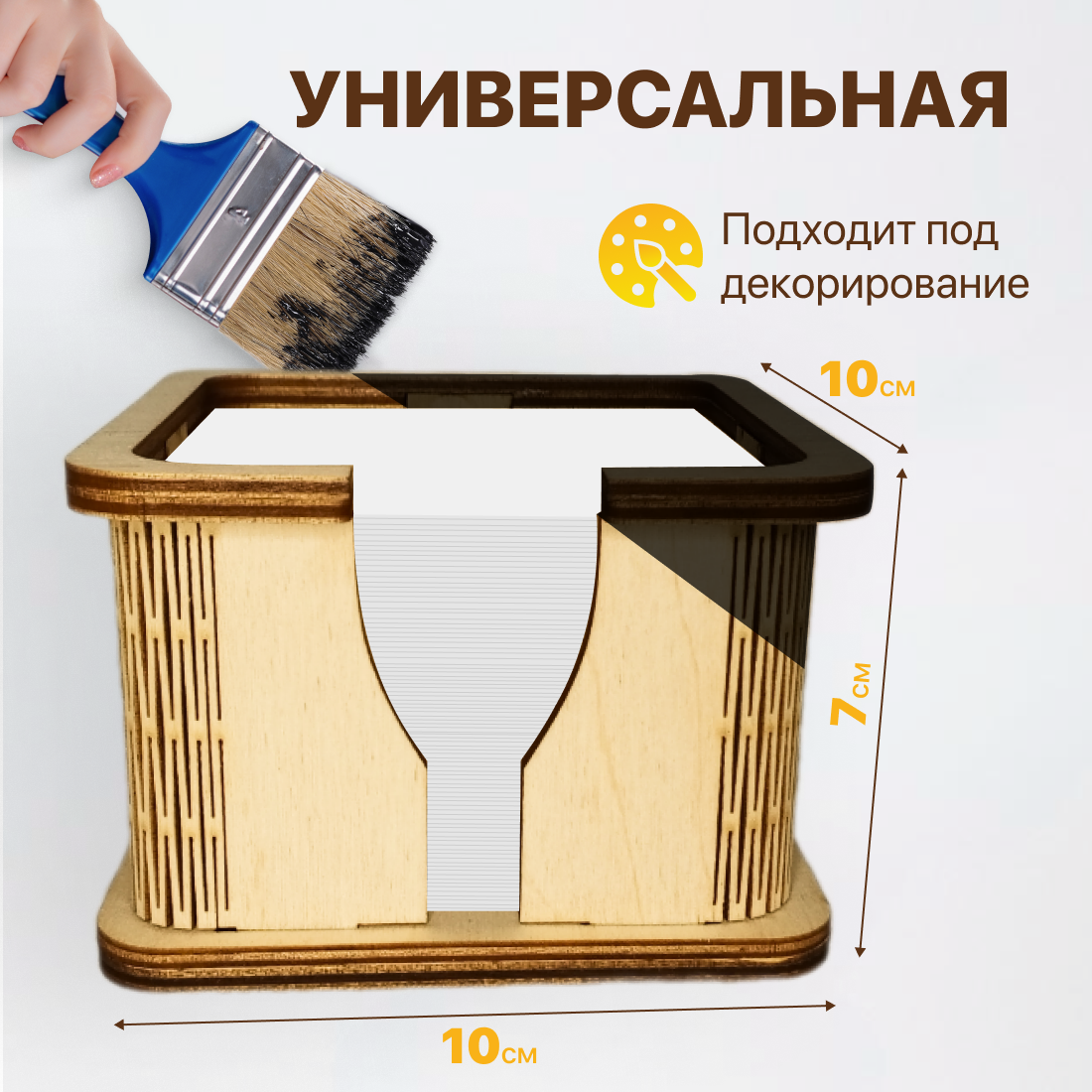 Подставка для бумажного блока, кубарика, стикеров, бумаги для записей, из фанеры, 10х10х7 см интересное: