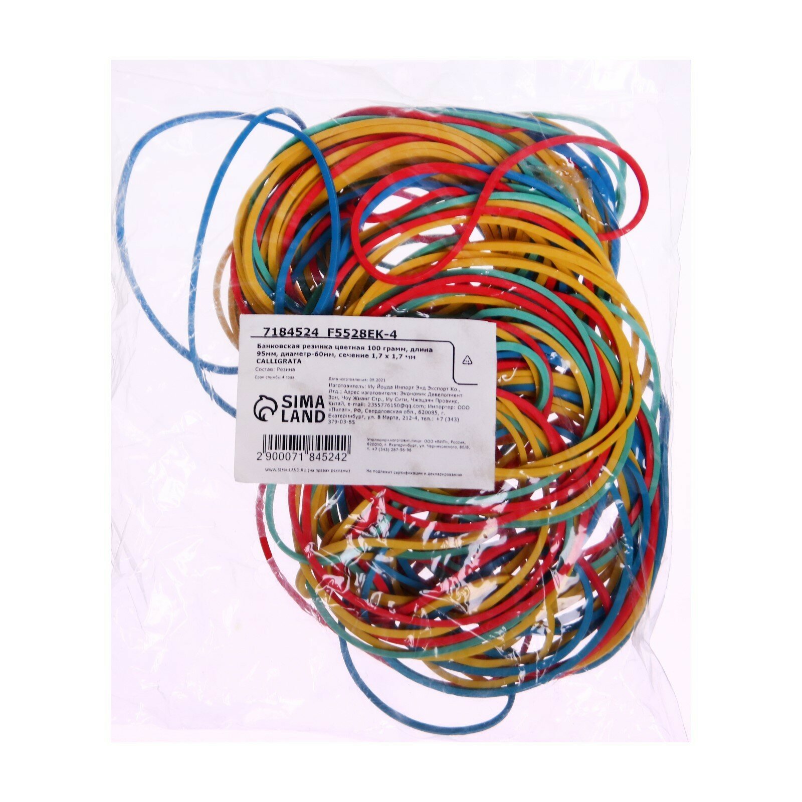 Купить Банковская резинка, 100 г, диаметр 60 мм, длина 95 мм, сечение 1,7 х 1,7 мм, микс, в пакете