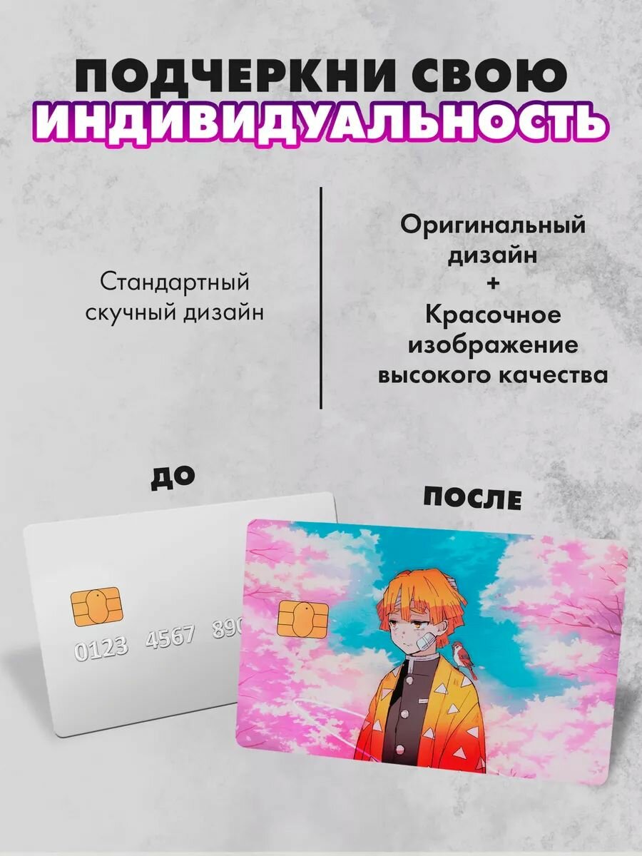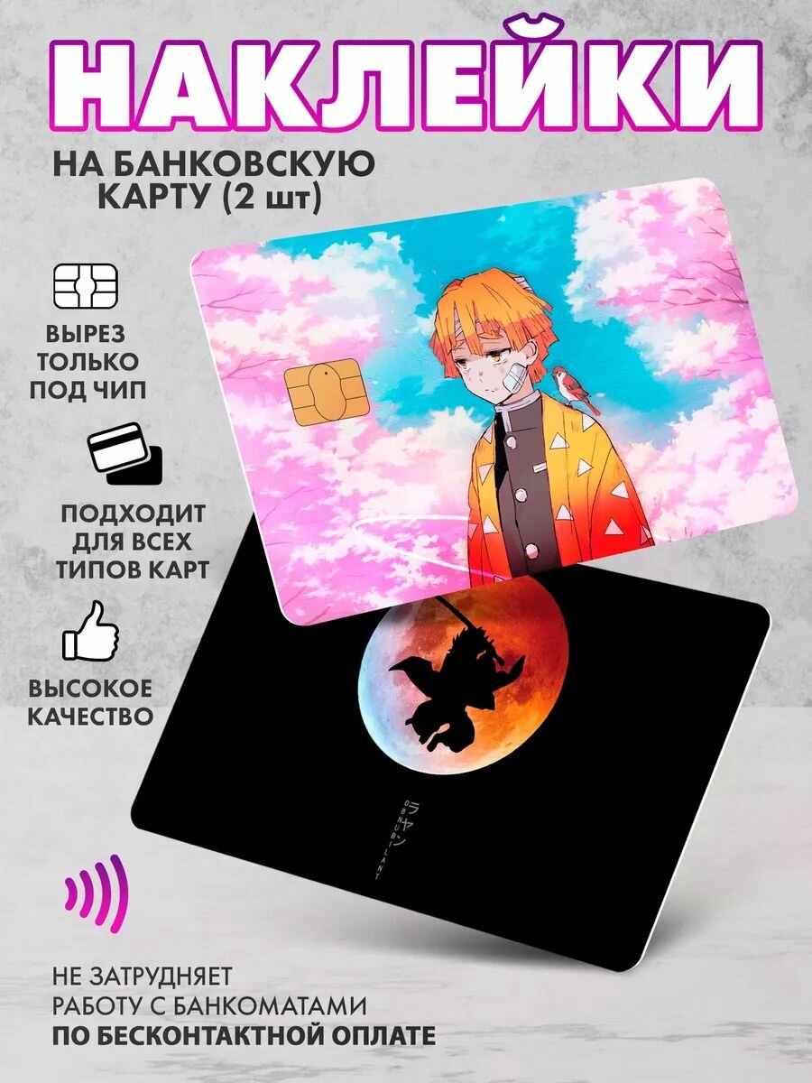 Набор виниловых стикеров-наклеек на банковскую карту "Танзиро" (2)/Без выреза для номера, для всех типов, 2 шт (По одной на каждую сторону)
