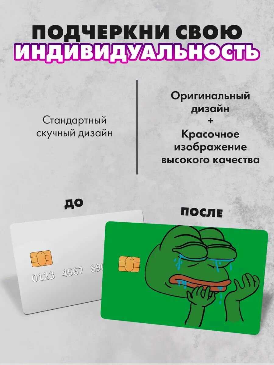 СохранитьНабор виниловых стикеров-наклеек на банковскую карту "Лягушонок Пепе" (2)/Без выреза для номера, для всех типов, 2 шт (По одной на каждую сторону) интересное: