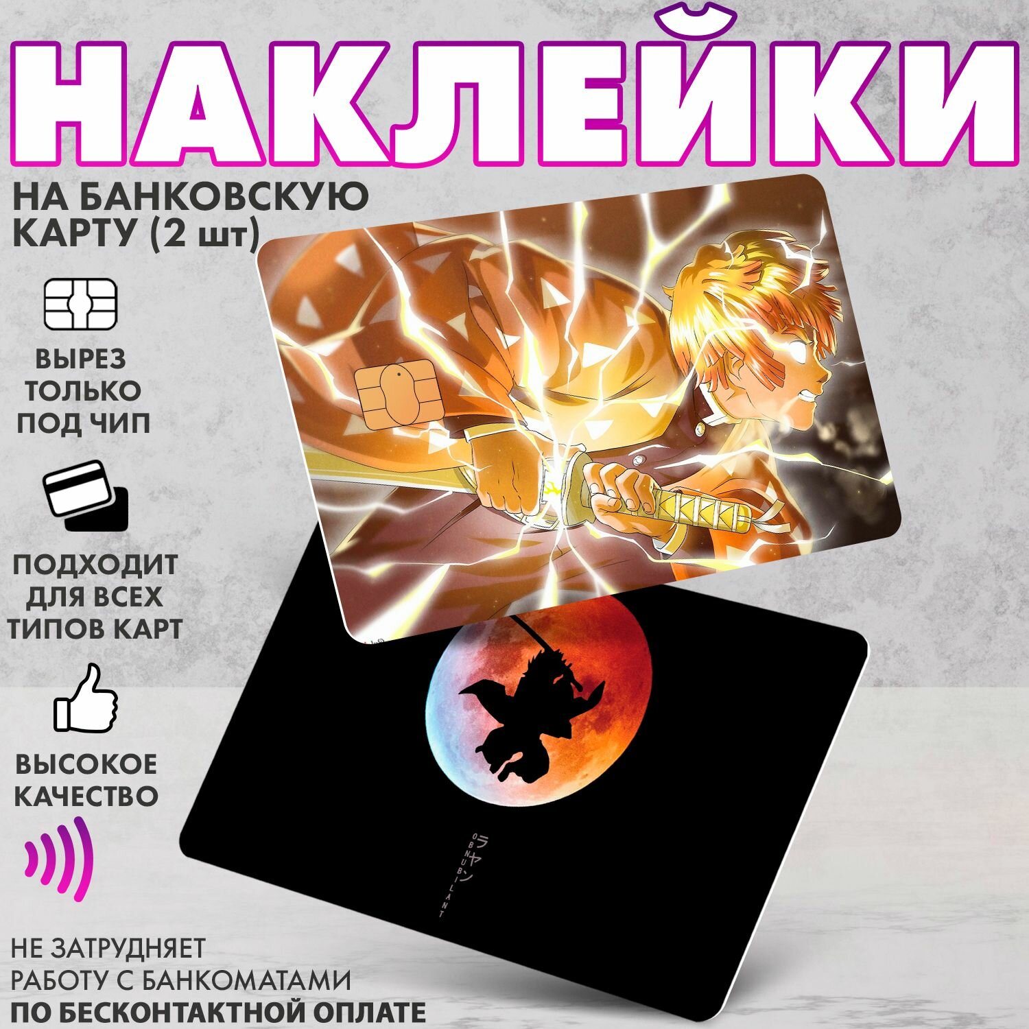 Набор виниловых стикеров-наклеек на банковскую карту "Незуко Камадо" (4)/Без выреза для номера, для всех типов, 2 шт (По одной на каждую сторону)