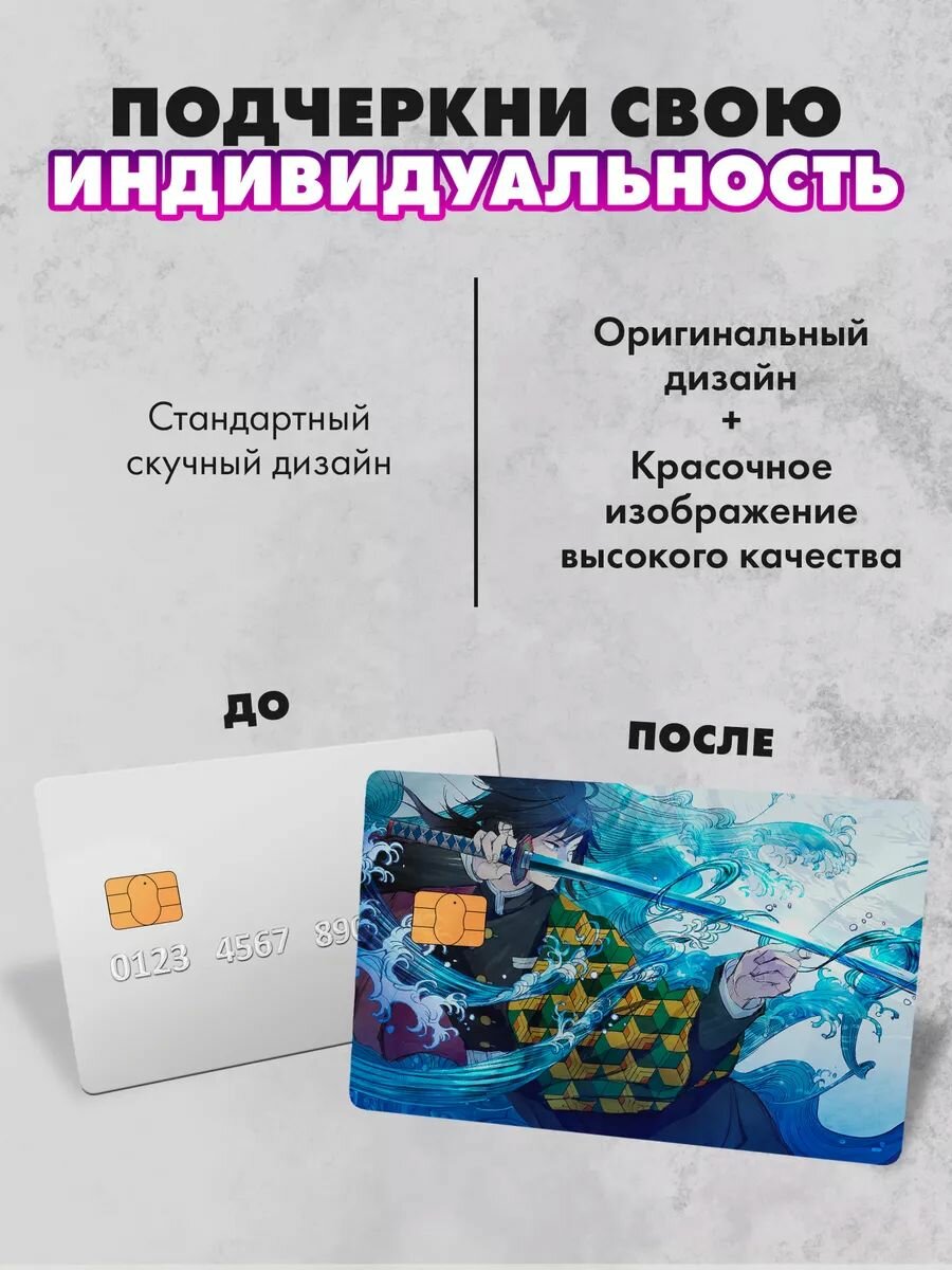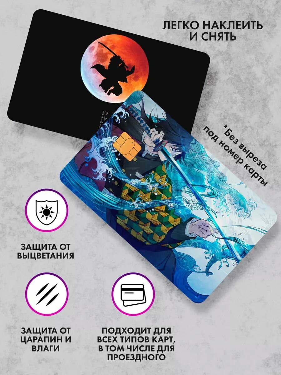 Набор виниловых стикеров-наклеек на банковскую карту "Незуко Камадо" (4)/Без выреза для номера, для всех типов, 2 шт (По одной на каждую сторону)