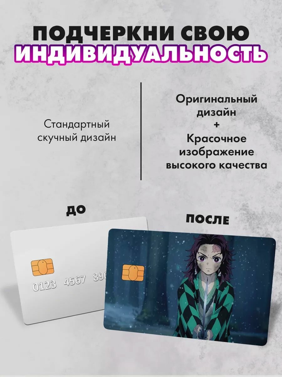 СохранитьНабор виниловых стикеров-наклеек на банковскую карту "Танзиро" (2)/Без выреза для номера, для всех типов, 2 шт (По одной на каждую сторону) интересное: