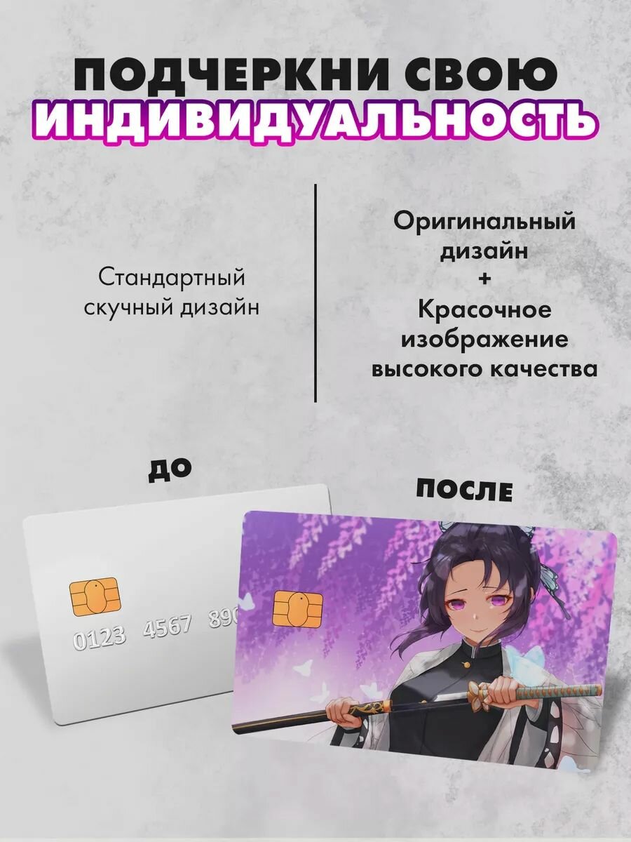 Купить Набор виниловых стикеров-наклеек на банковскую карту "Шинобу Кочо" (2)/Без выреза для номера, для всех типов, 2 шт (По одной на каждую сторону)
