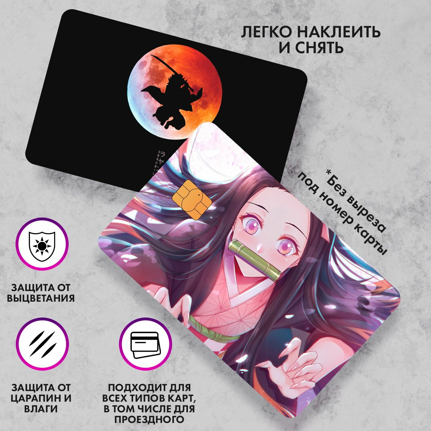 Купить Набор виниловых стикеров-наклеек на банковскую карту "Незуко Камадо" (4)/Без выреза для номера, для всех типов, 2 шт (По одной на каждую сторону)