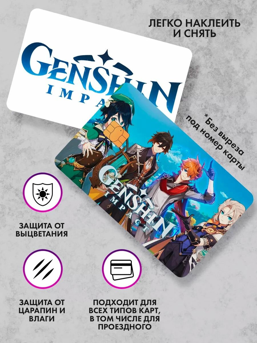 Купить Набор виниловых стикеров-наклеек на банковскую карту "Genshin Impact (3)" (Геншин Импакт)/Без выреза для номера, для всех типов, 2 шт (По одной на каждую сторону)