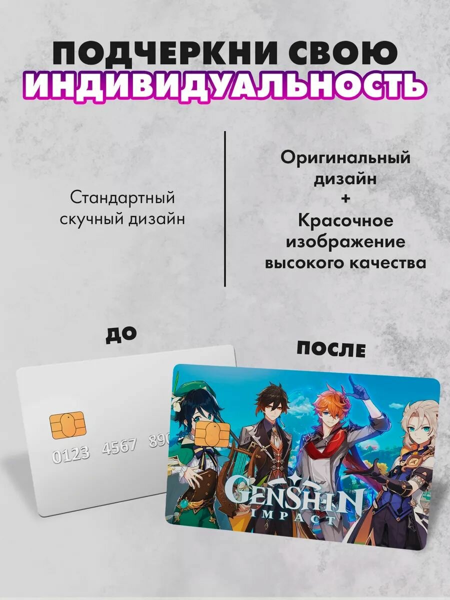 СохранитьНабор виниловых стикеров-наклеек на банковскую карту "Genshin Impact (3)" (Геншин Импакт)/Без выреза для номера, для всех типов, 2 шт (По одной на каждую сторону) интересное: