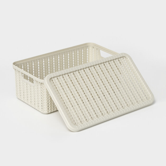 Корзина для хранения с крышкой «Вязание», 3 л, 26,5?15?10 см, цвет белый