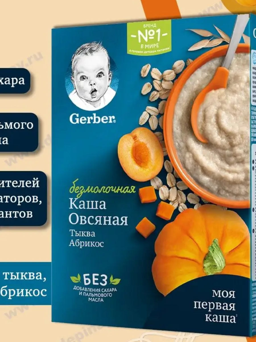 Ниже Вы можете прочитать отзывы на Каша безмолочная овсяная с тыквой, абрикосом для начала прикорма, с бифидобактериями GERBER, с 5 мес. 180г, ознакомится с подробными характеристиками, посмотреть интересные обзоры и фотографии на Каша безмолочная овсяная с тыквой, абрикосом для начала прикорма, с бифидобактериями GERBER, с 5 мес. 180г.