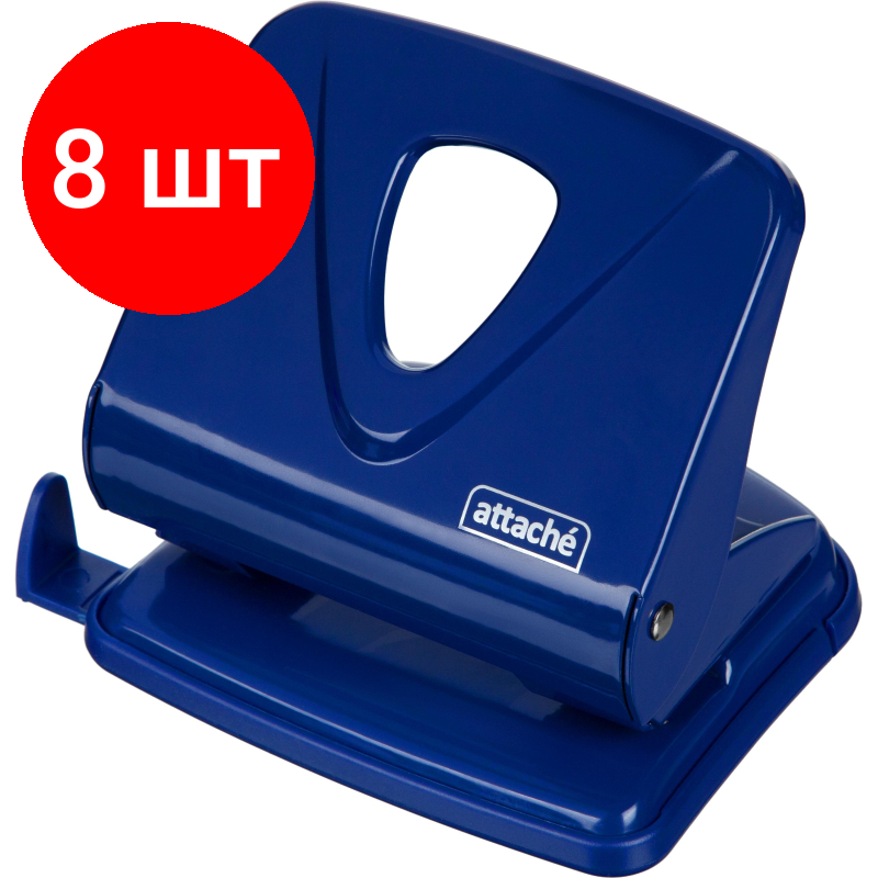 Купить Комплект 8 штук, Дырокол Attache Symbol до 30 листов, линейка, металл, синий